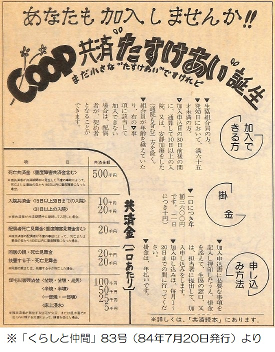 組合員に向けて正しい情報提供と現状を伝えることを目的に、再建後さっそく現在の「くらしとなかま」の前身となる機関紙第1号を発行。