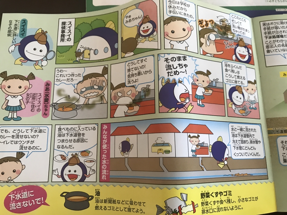 もらったパンフレットを子供と見ながら、下水道の仕組みを勉強しました。
