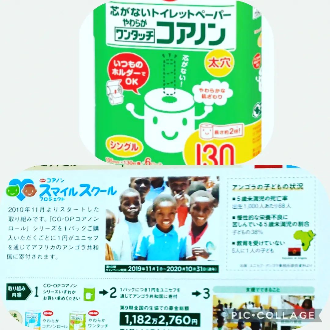 #Cコレ商品のある風景 #CO-OPコアノンシリーズ #西日本衛材 #再生紙100% #牛乳パック #CO・OPコアノンスマイルスクールプロジェクト #ユニセフ支援、募金 #アンゴラ共和国 #おかやまコープ倉敷エリアインスタグラム #ユニセフ ハンド・イン・ハンド #コープのエシカル #SDGs