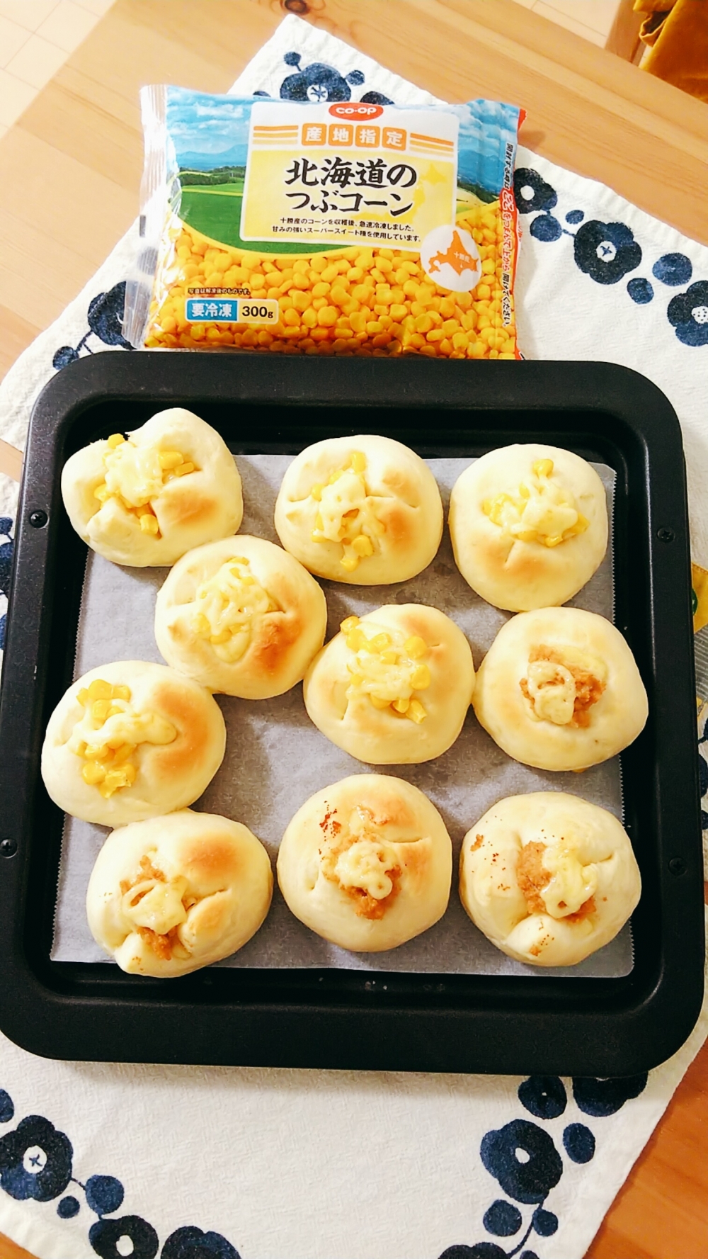 北海道産粒コーンで手作りパン♡焼き立ての香りがたまりません☺️
