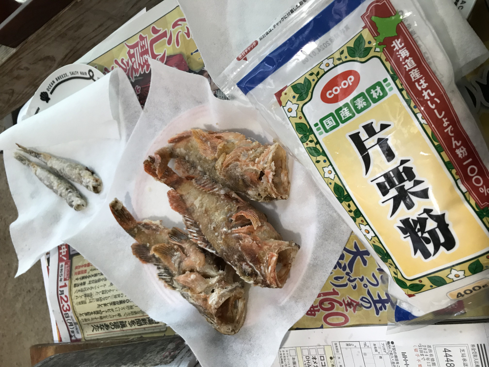 コープの片栗粉で釣りたての赤メバルを唐揚げに。