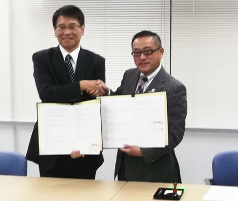 高梁市役所で行われた締結式では、近藤隆則市長とおかやまコープ平田昌三理事長が締結書を交わしました。