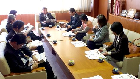調印式に続いて、おかやまコープの地域社会づくりへの参加や矢掛町の取り組みなどについて懇談が行なわれ、有意義な時間となりました。