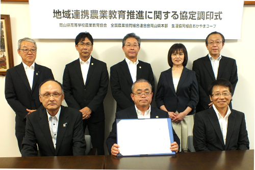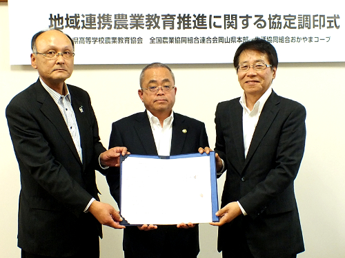 岡山県の8つの農業高校では、約2,000名の生徒が農業について学んでおり、さらに多くの生徒が岡山県の農林業を支える人になってもらうことが願いです。この協定で、商品開発や販売、農業関連分野でのインターシップなどで生徒たちが様々な体験ができることで、生徒にとって農業が更に身近なものと確信しています。