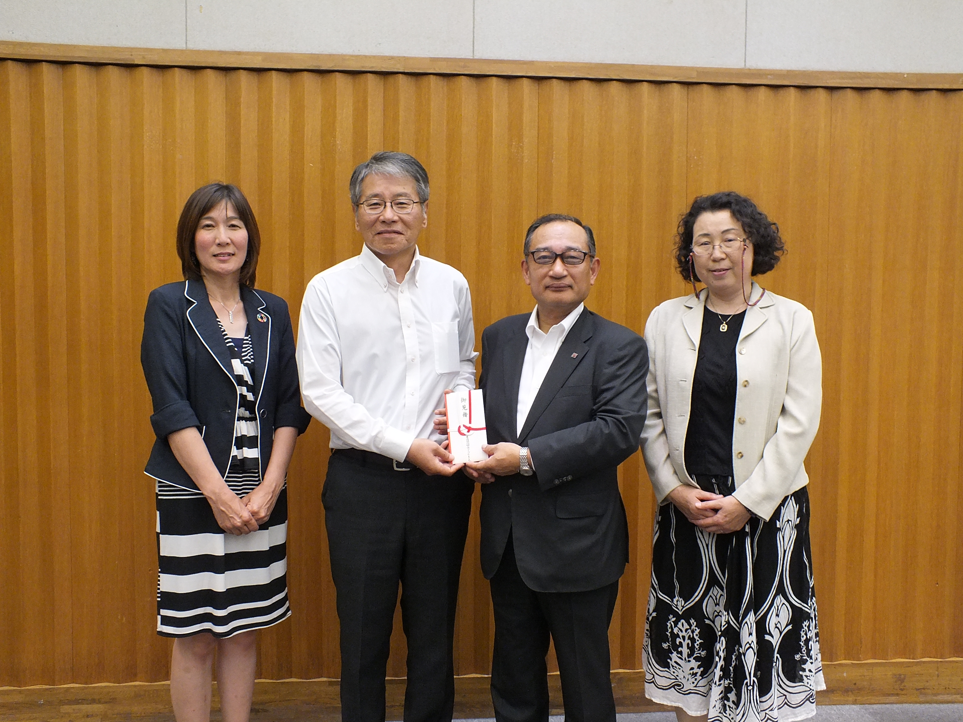 「このたびの豪雨は本当に大変な被害でした。被災地の皆さんは大変なご苦労をされていると思います。コープやまぐちの“虹の助け合い基金”から一部をお贈りします。わずかですが、少しでもおかやまコープの皆さんのお役に立てればと思います」