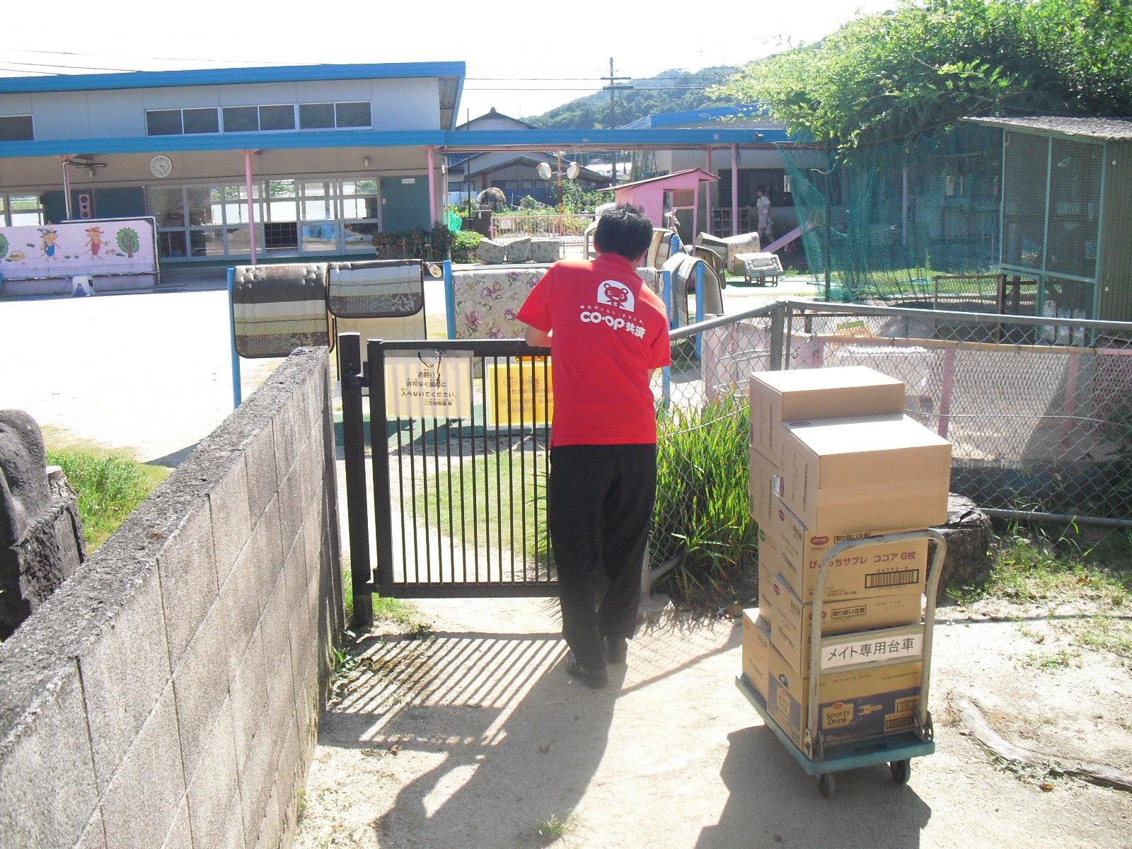 7月31日(火)、玉島センター堀本佳彦センター長らは倉敷市立薗(その)幼稚園を訪れ、コープのお菓子をお届けし、大変喜ばれました。薗(その)幼稚園には、被災後57名の保育登録があり、日々約35名の児童を預かっているとのことです。
