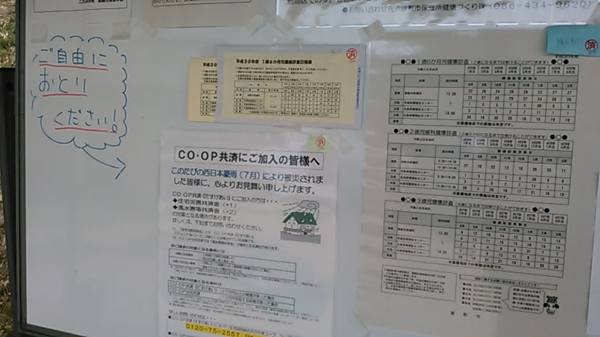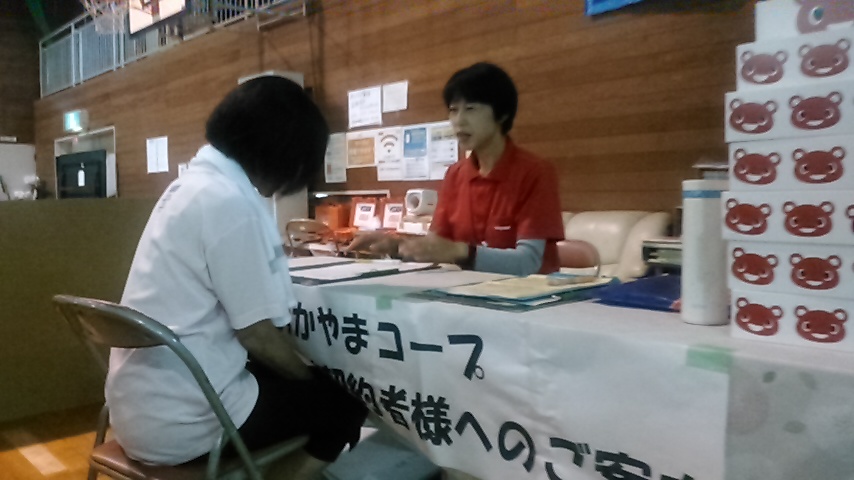 訪問活動の中でお会いできなかった方の中には、近隣の避難所で生活されている可能性が高いことから、8月9日(木)・10日(金)の2日間、真備町の二万(にま)小学校、岡田小学校の体育館内で共済契約者給付案内コーナーを設けました。