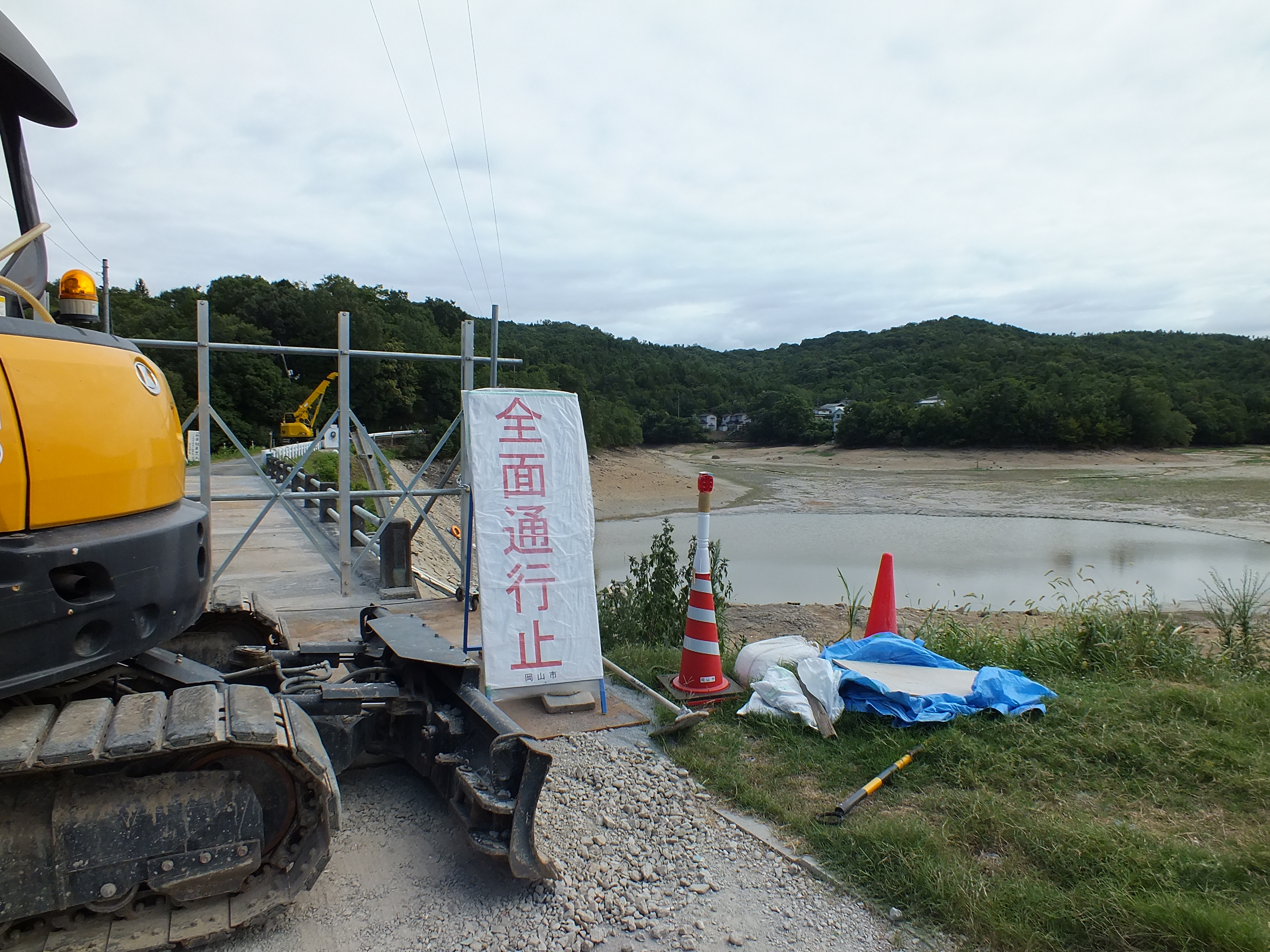 西日本豪雨によりトラックで通れる道が通行止めになっている岡山市北区菅野の南山地区