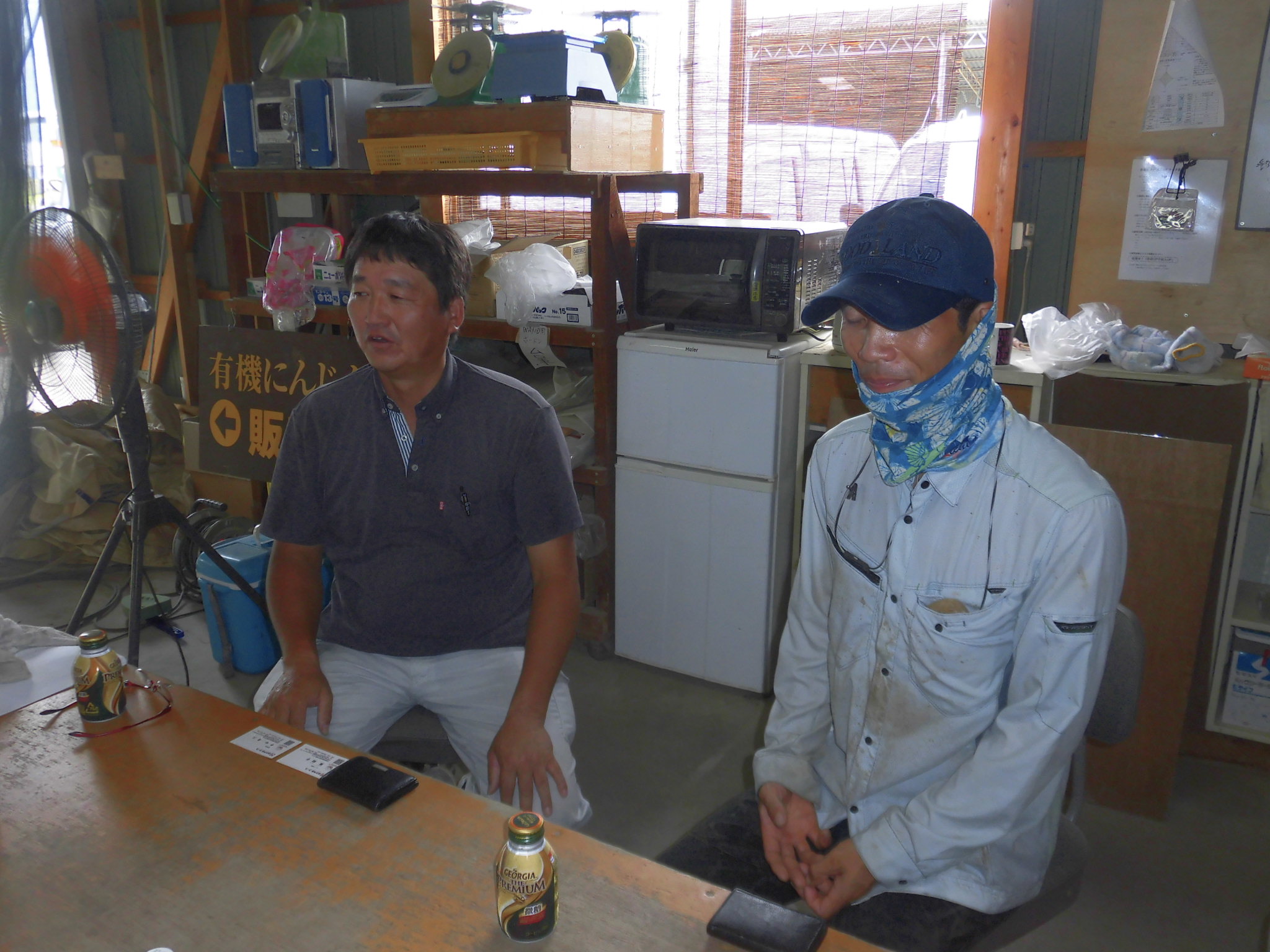 被災の状況と今後の人参生産や農業の夢を語る林社長(左)