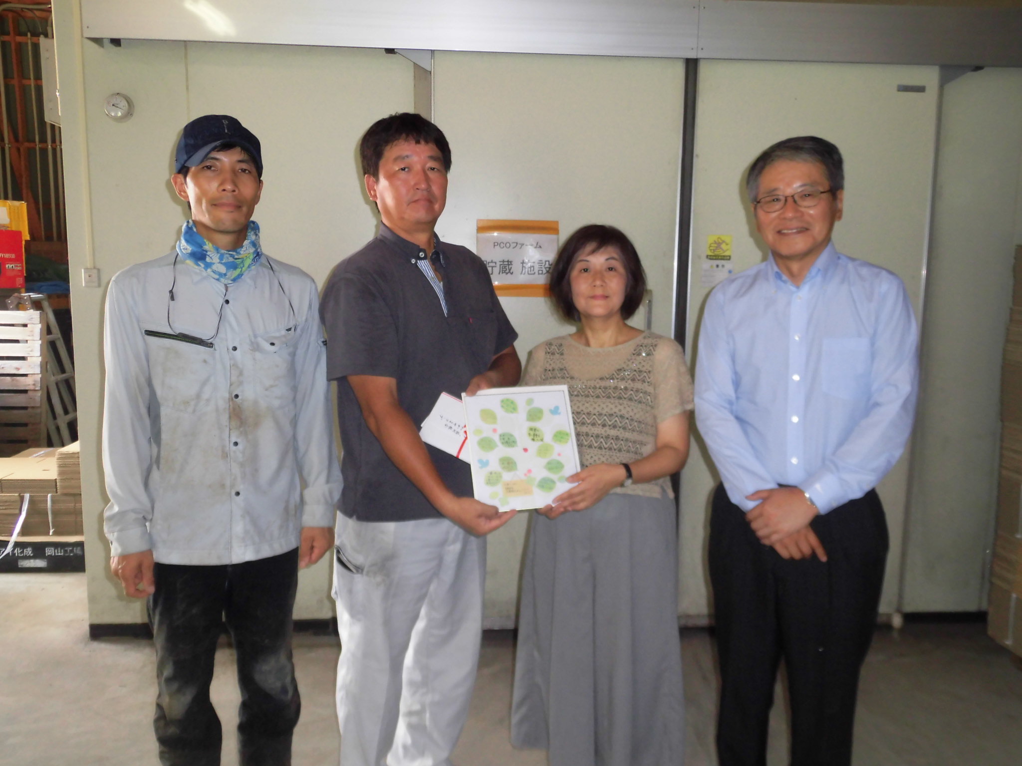 平田理事長から、林賢治代表取締役社長にお見舞いをお渡しし、林社長からは「私たちはただ単に農産物を販売するのではなく、消費者とのつながりを大切にしてきました。今後もよい人参を生産することで組合員さんの声に応えていきます」と決意を込めたメッセージをいただきました。