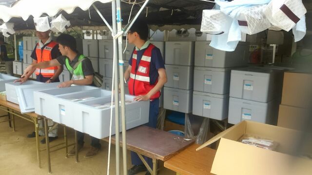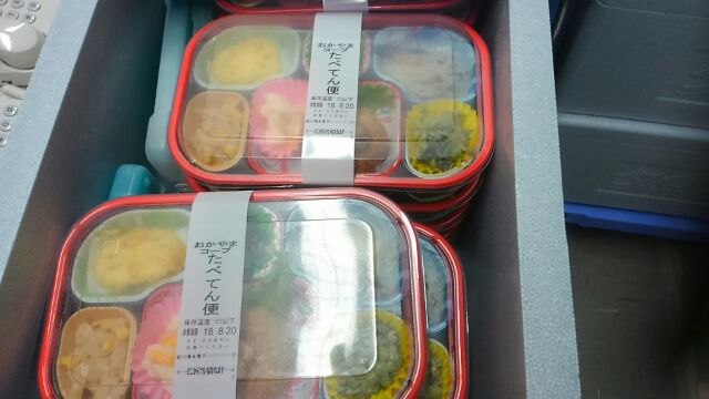 おかやまコープは、倉敷市からの要望に応え、8月1日(水)から、真備町避難所である岡田小学校へ栄養に配慮した日替わり弁当約500食のお届けを開始しています。避難所での食事は、おにぎりやパンが中心で栄養の偏りが心配されていました。避難所の方からは、これまでより野菜が多く取れる、と好評です。