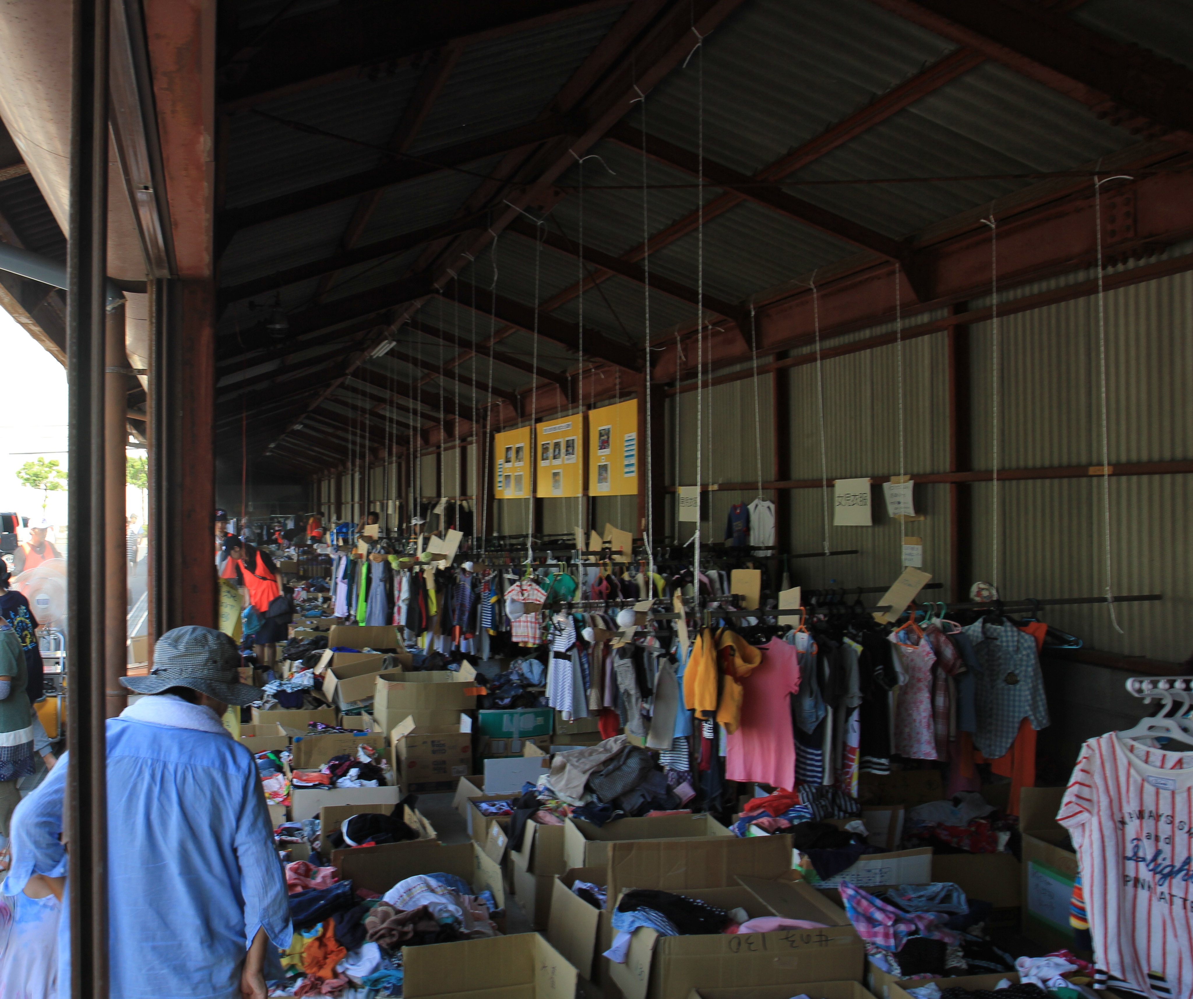 総社市役所に設けられた被災者の方々への物資提供スペース