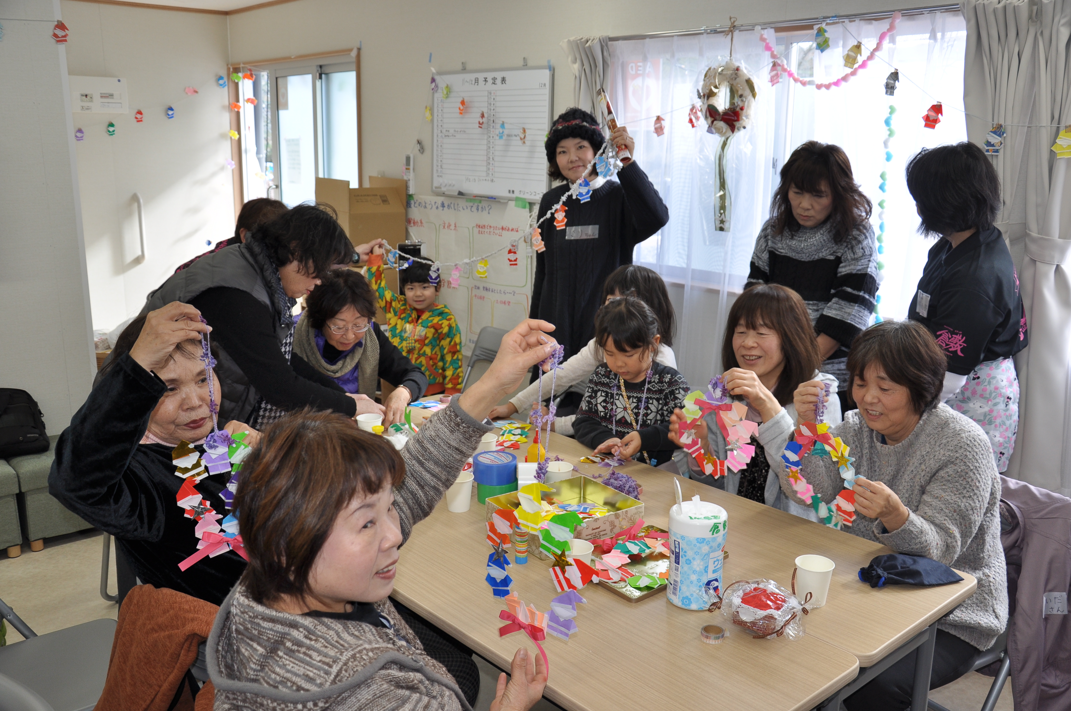 二万仮設団地でのサロンは1ヵ月に1回のペースで開催され、今後の予定は、1月12日(土)、2月2日(土)、3月2日(土)です。