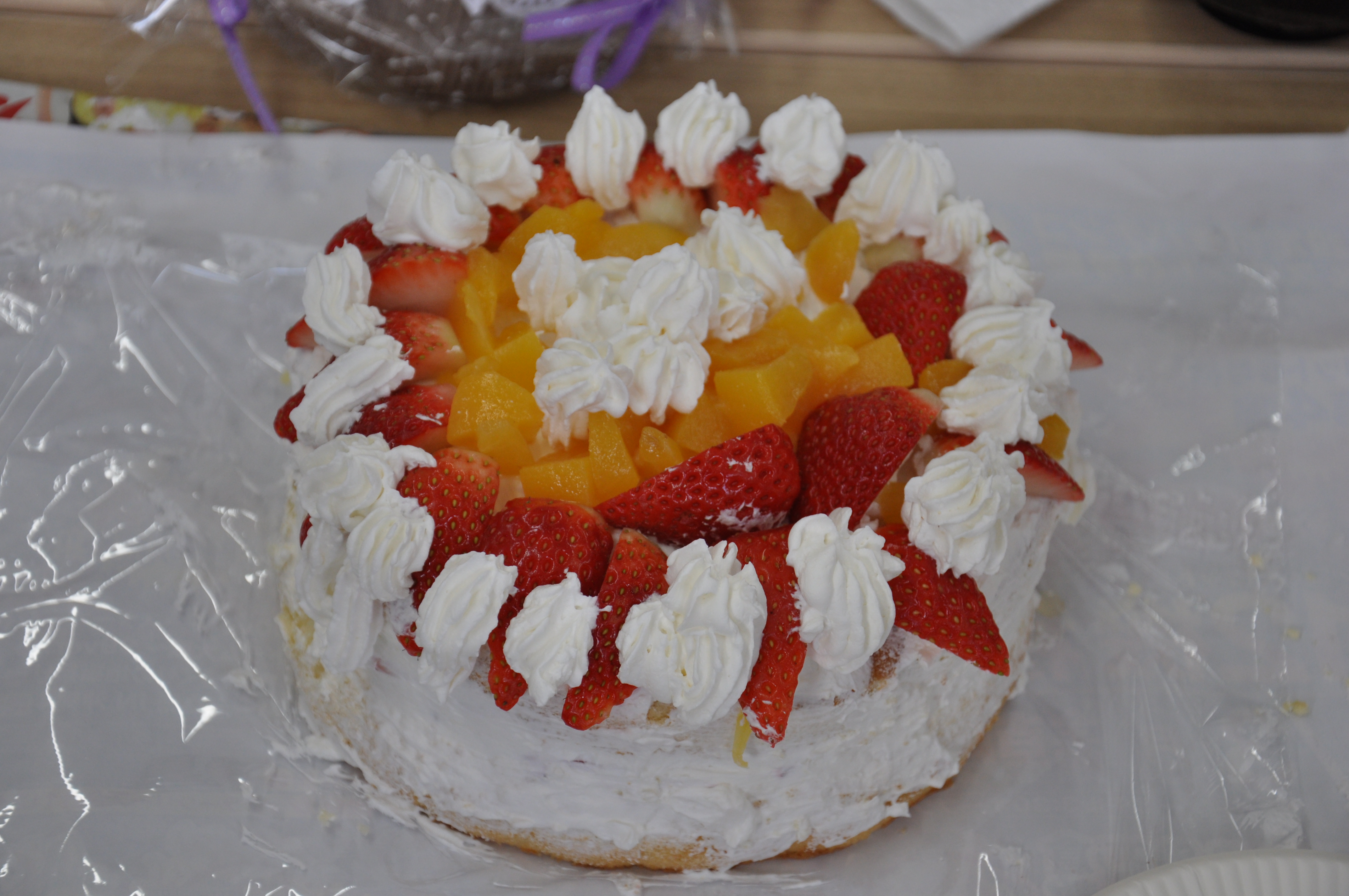 その後、準備したスポンジ台に生クリームや果物でデコレーションし、子ども達がワイワイ楽しんで作る姿が見られました。