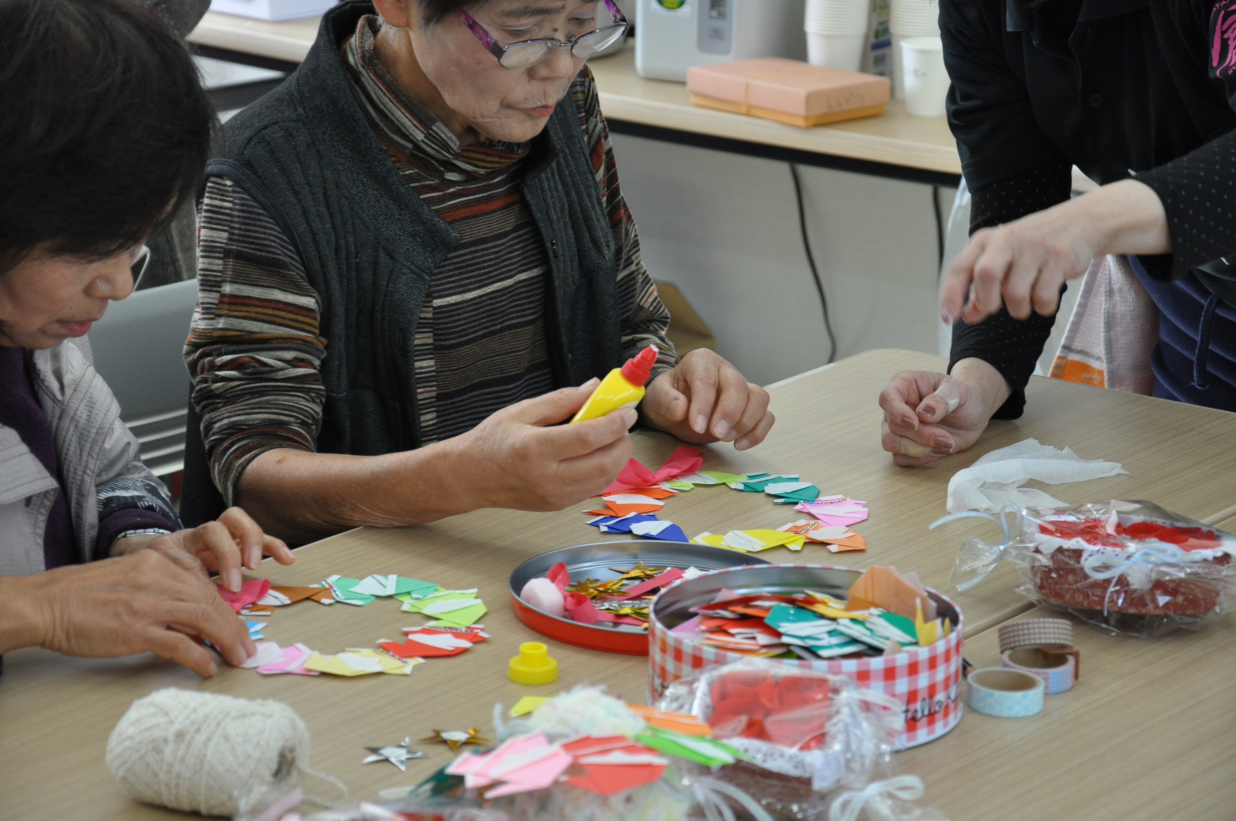 12月8日(土)、二万仮設住宅談話室(倉敷市真備町上二万)で「サンタリースを作ろう!」を開催しました。