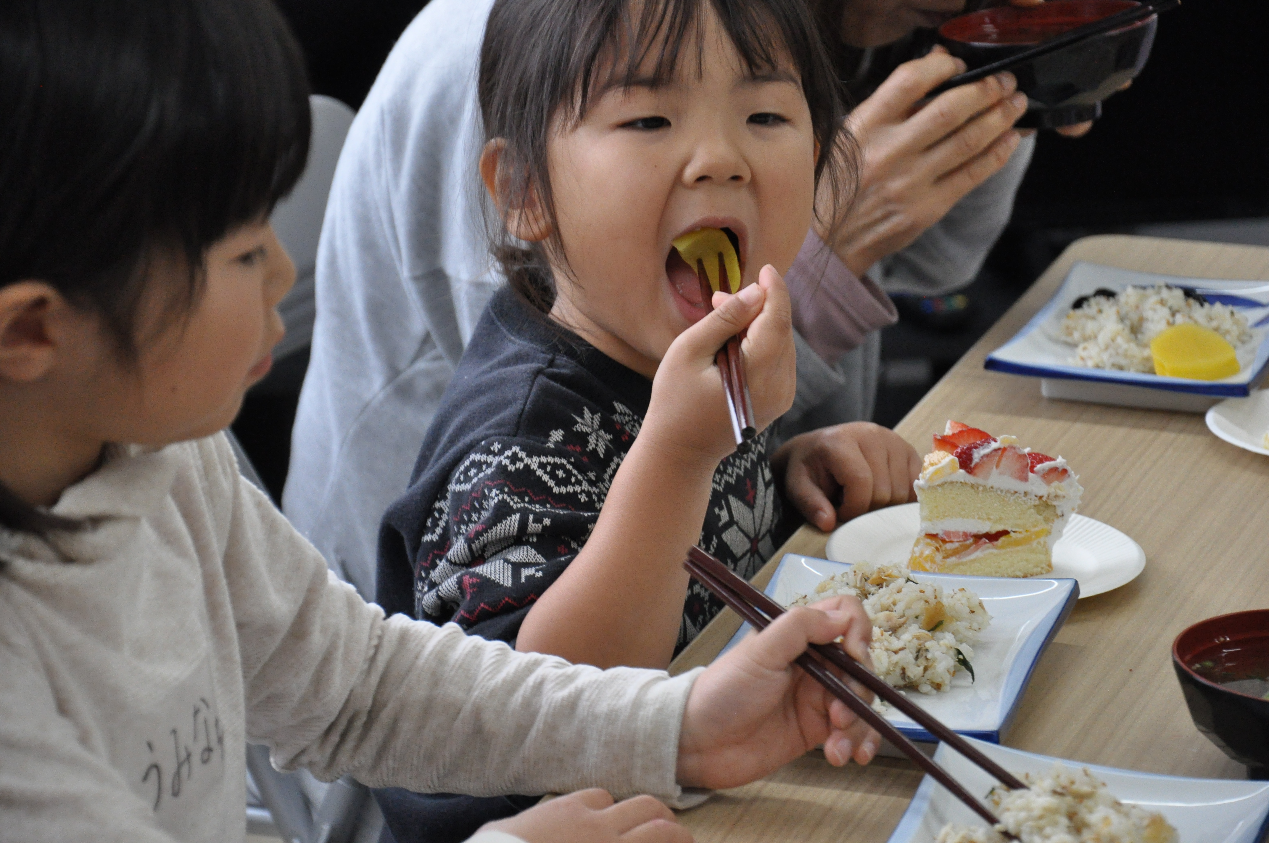 さばのまぜご飯とみそ汁、クリスマスケーキを各自で取り分け、参加者の方同士で交流しながら食事を楽しみました。