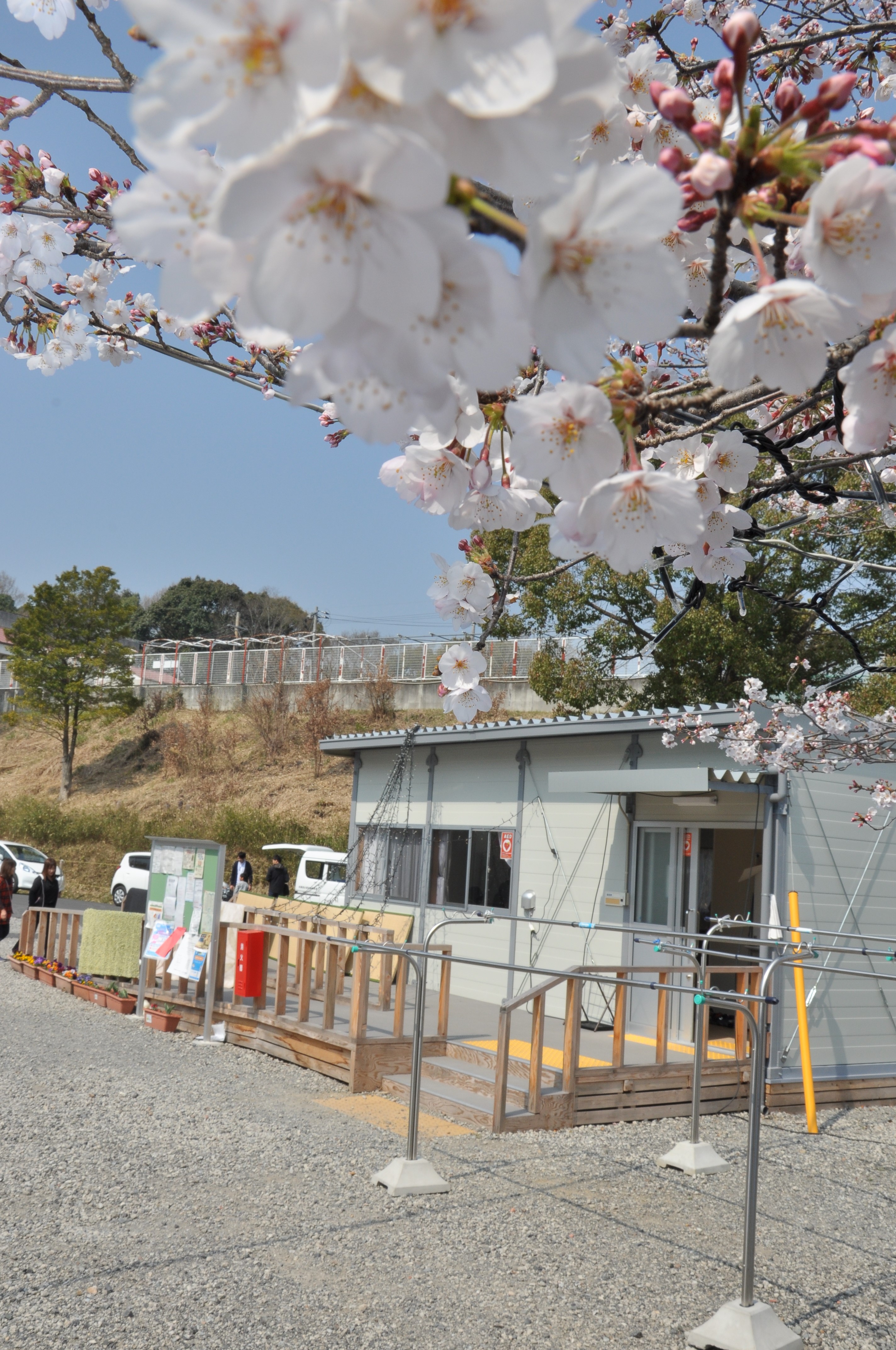 春の陽気に誘われて、仮設住宅付近の桜も満開。
