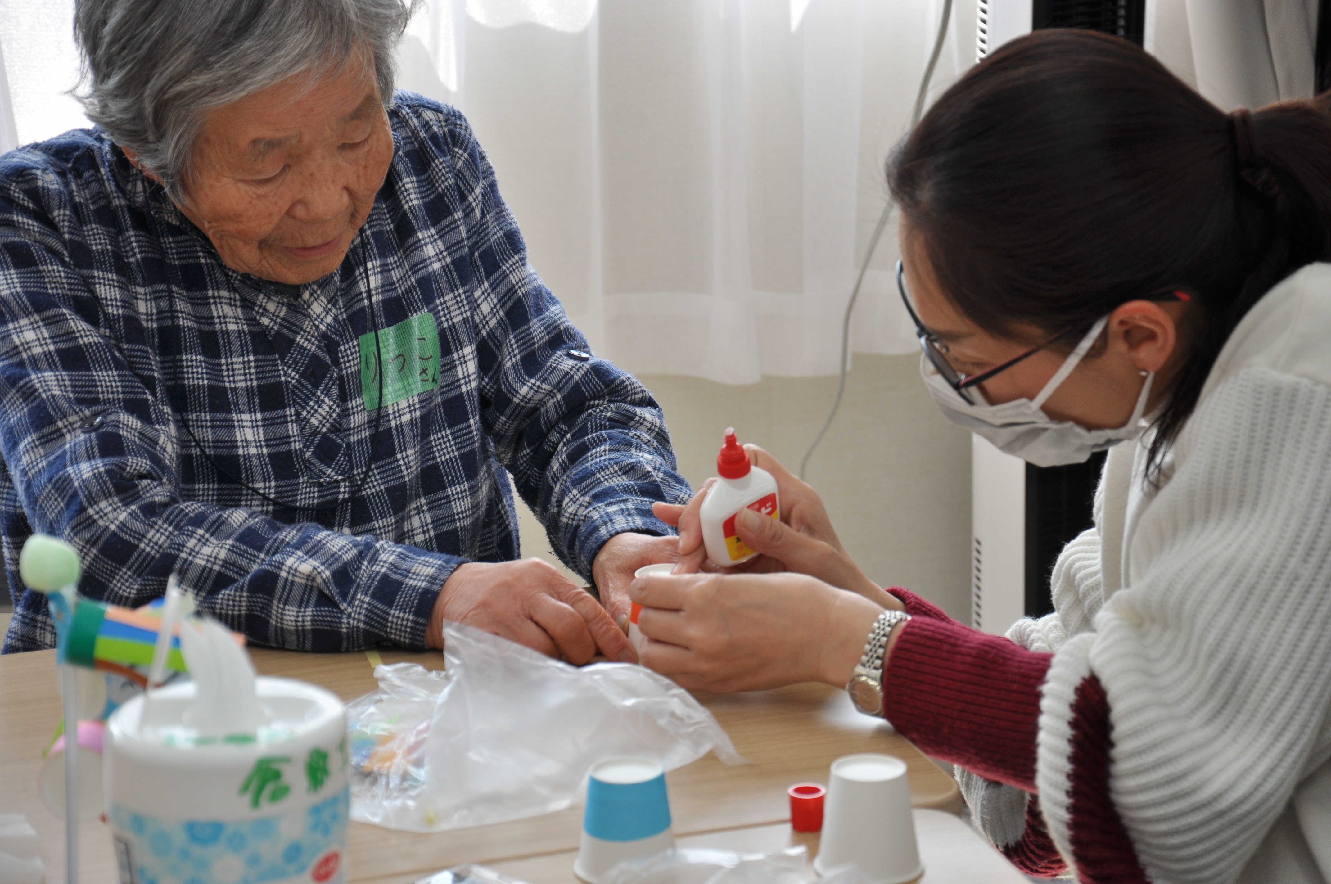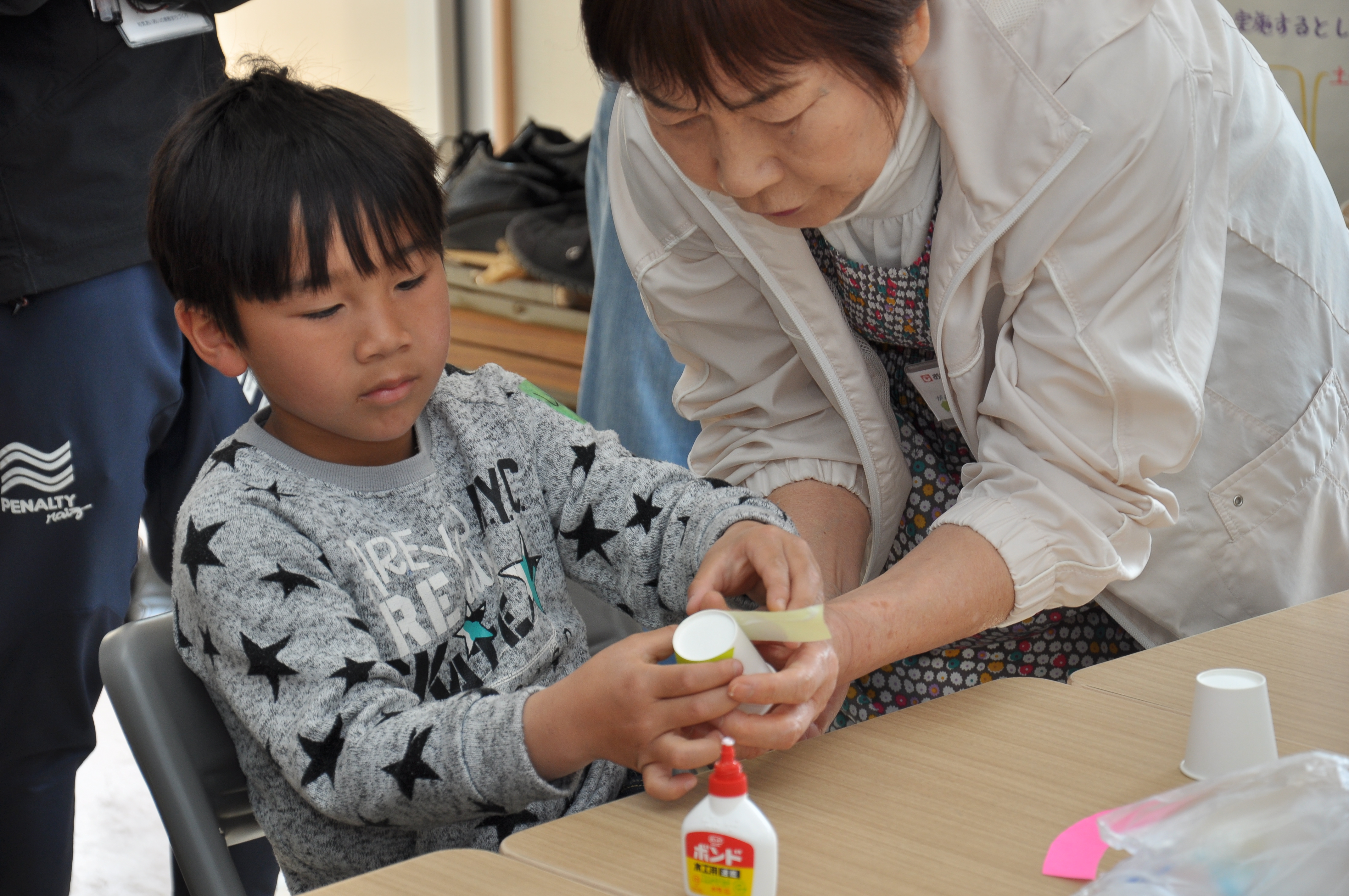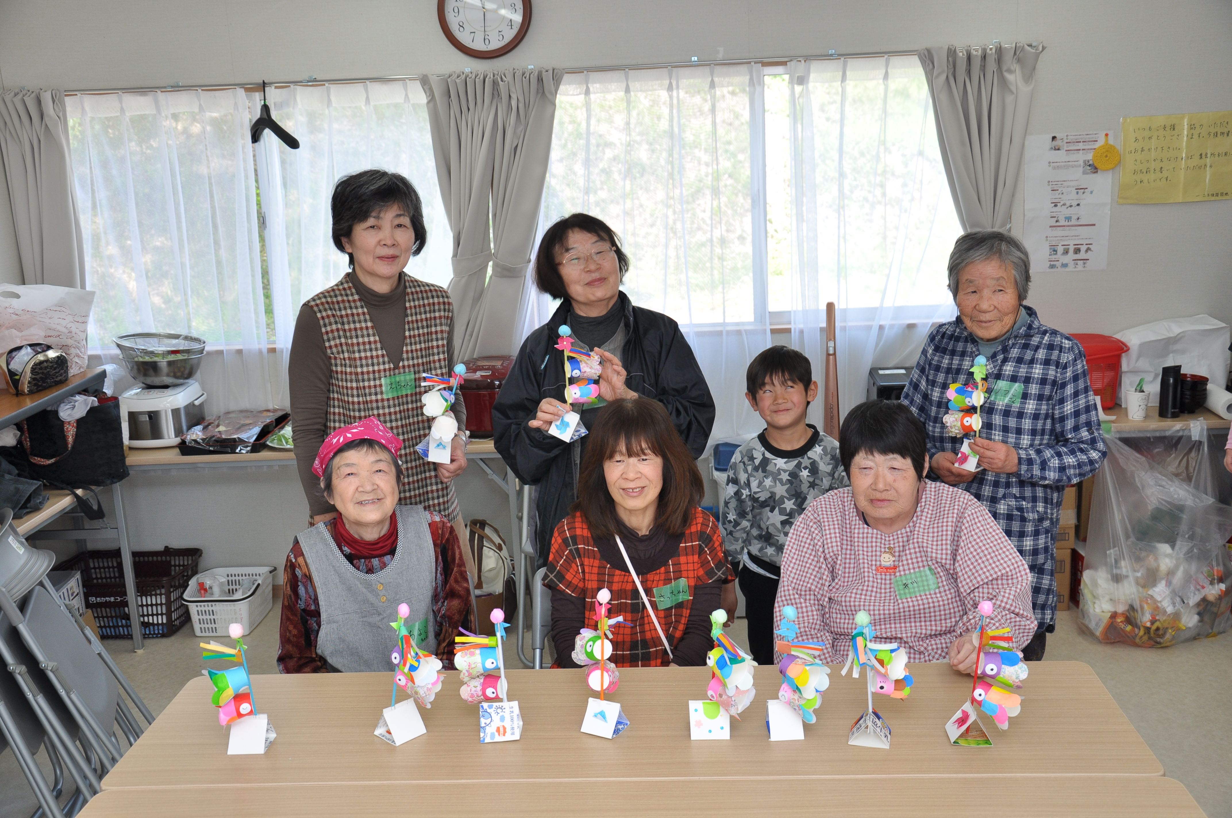 いろいろな話をしながら、隣の人と協力し合って素敵なこいのぼりが完成。