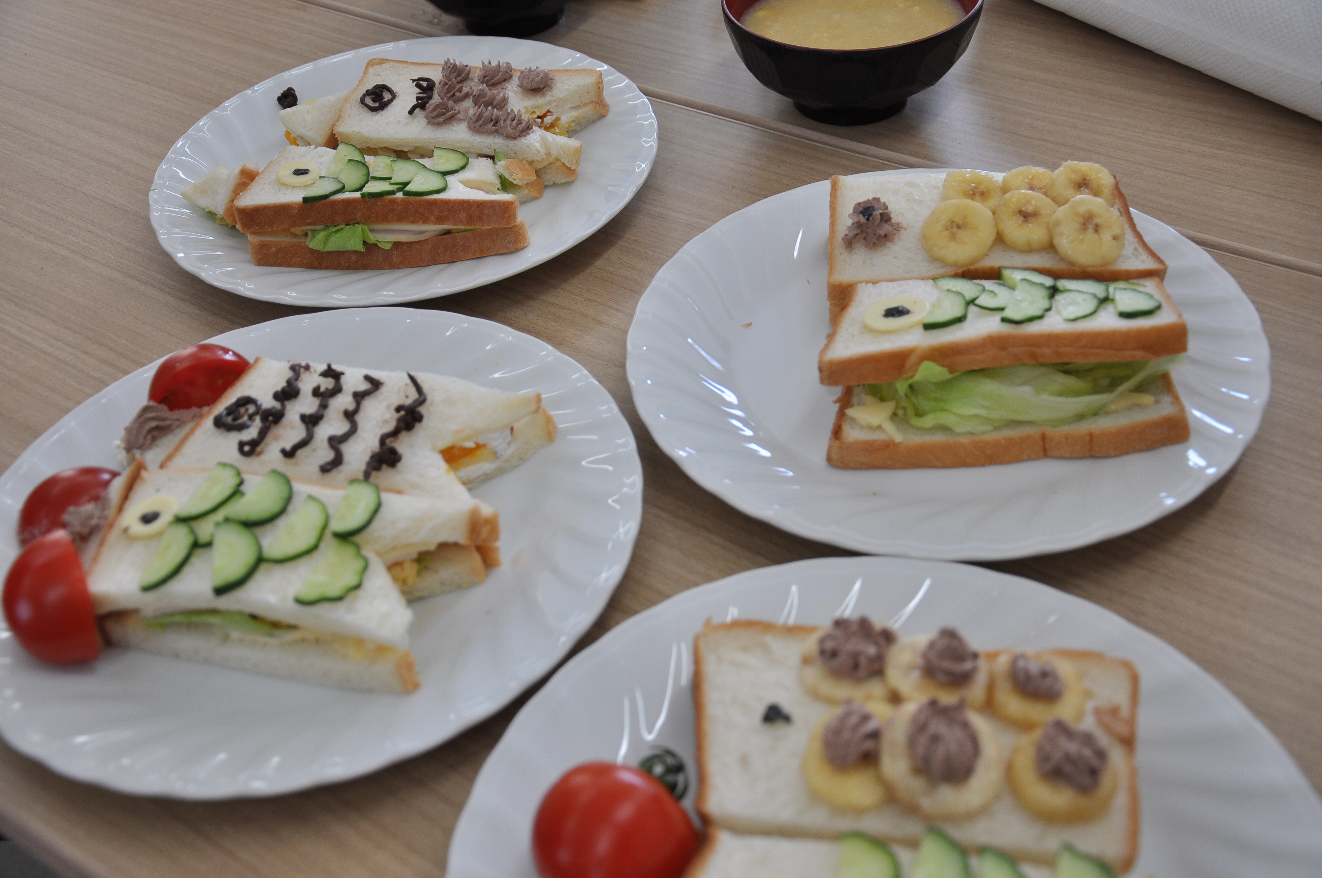 昼食は、参加者でこいのぼりサンドイッチを作り、食事をしながら交流しました。