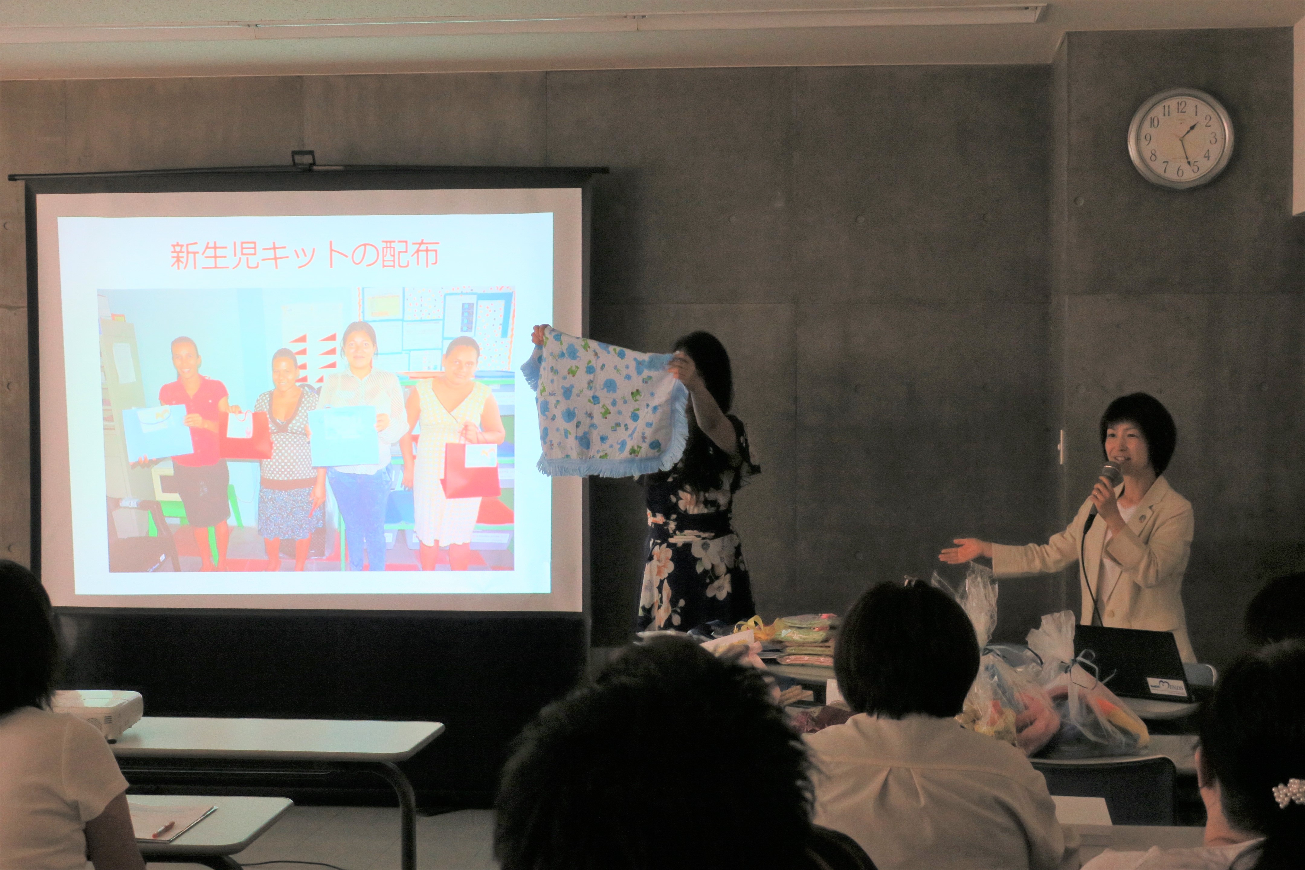 募金贈呈式のあと、海外事業部の林裕美さんから現地での支援活動の報告がありました。ホンジュラスのくらしの紹介や、おかやまコープからの支援により、妊婦クラブ・キッズクラブの活動がすすみ、保健教育やキッズスペースの設置がすすんでいることなどをお聞きすることができました。今年度はエコー検査室の環境整備や2歳以下の子どもと親を対象とした「キッズクラブ」の実施、子どもの遊びや生活に必要なものをセットした「子どもキット」の配布を予定しているそうです。