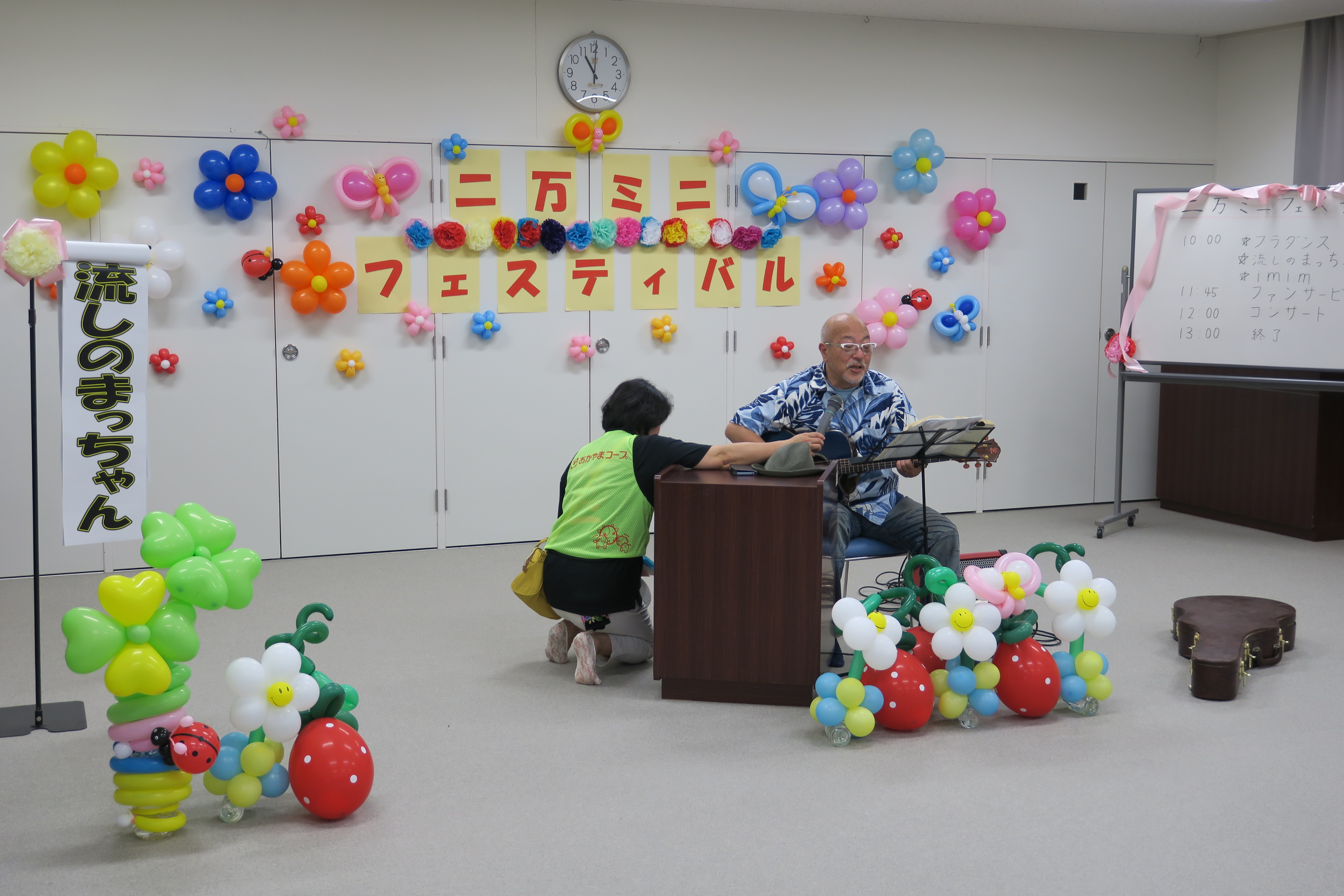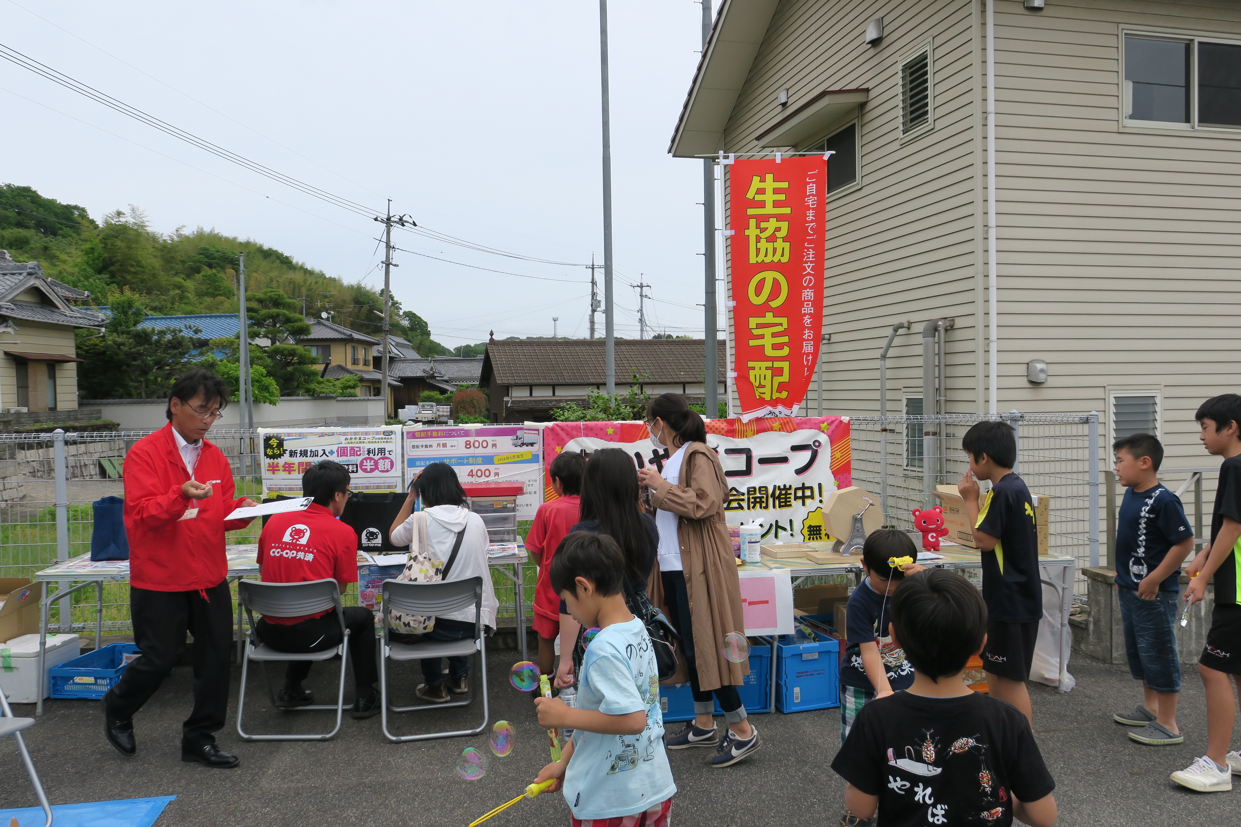 5月18日(土)、真備公民館二万分館(倉敷市真備町上二万)で二万ミニフェスティバルが開催され、おかやまコープから組合員、職員約25名が参加しました。このフェスティバルは、「西日本豪雨で被災された二万の皆さんに元気になってもらいたい」と二万社会福祉協議会・二万まちづくり推進協議会・倉敷市社会福祉協議会・おかやまコープが連携し、共催することで実現しました。