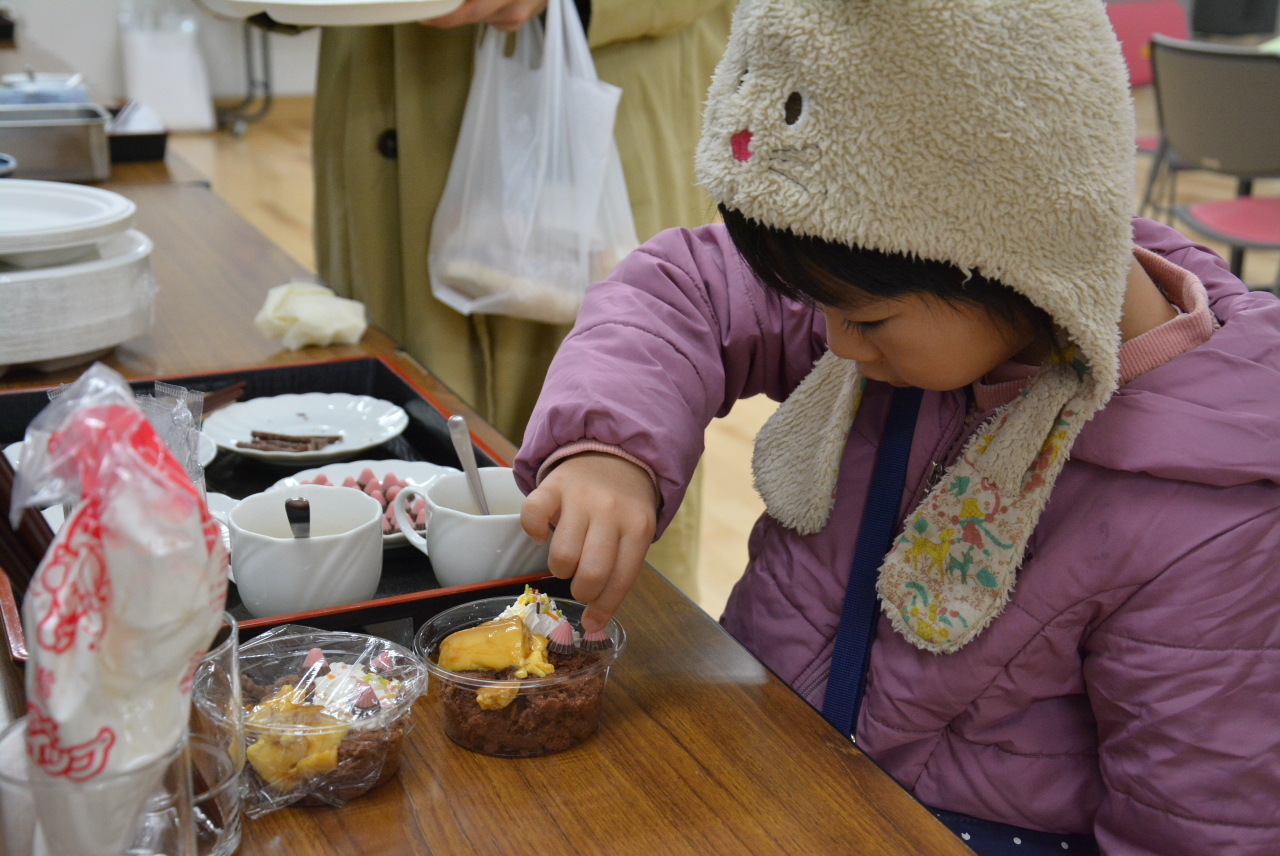 参加者からは「被災後、元気になれず外出もできない日が続いていた時がありました。今日初めてこのような場に参加してよかったと思います。これをきっかけにいろいろな催しに参加したいです」「子どもも楽しくデザートのトッピングをしました」「ボランティアの方の親切さに感謝です」といった声が寄せられました。