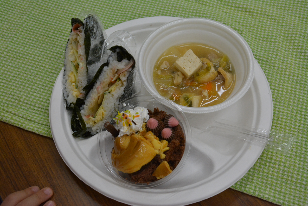 おにぎらずとホカホカの豚汁をみんなで手作り