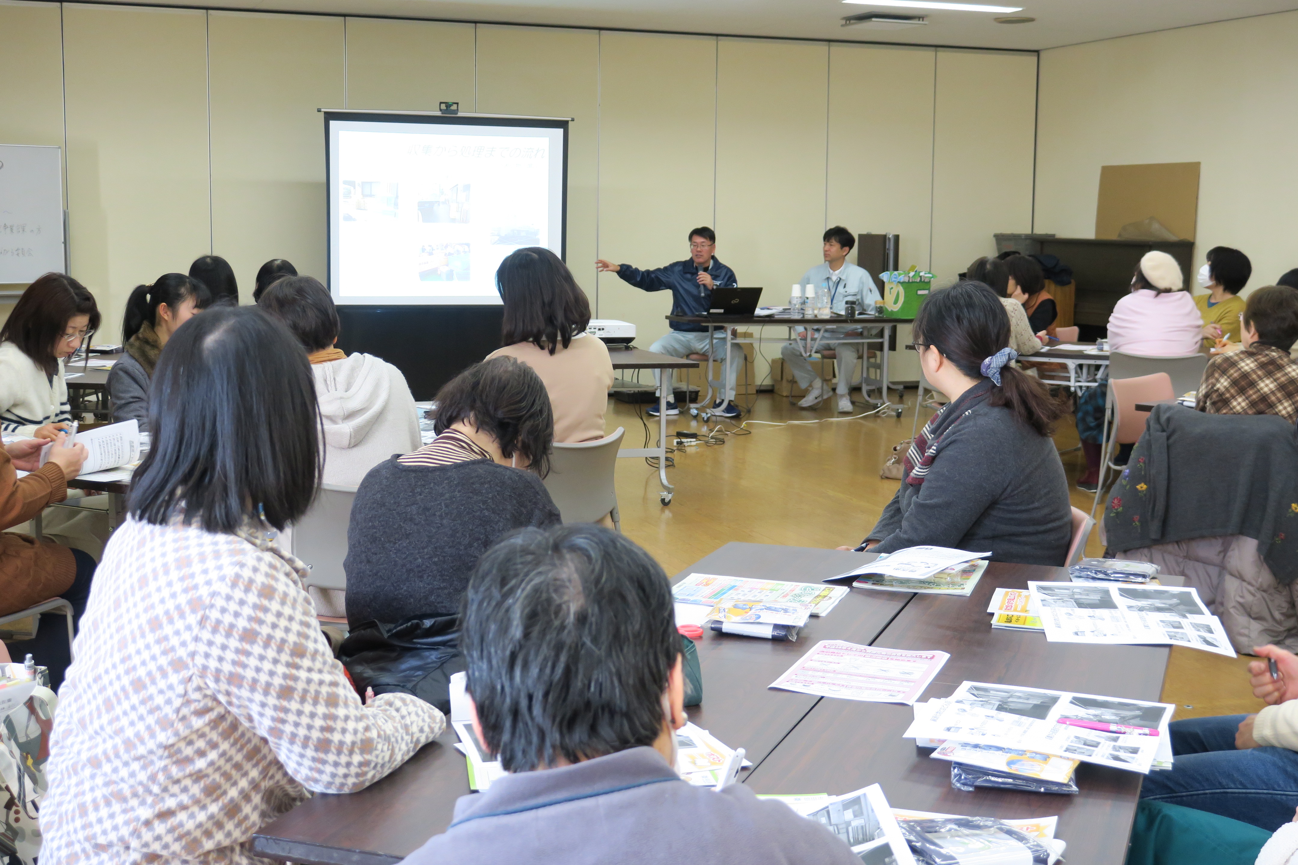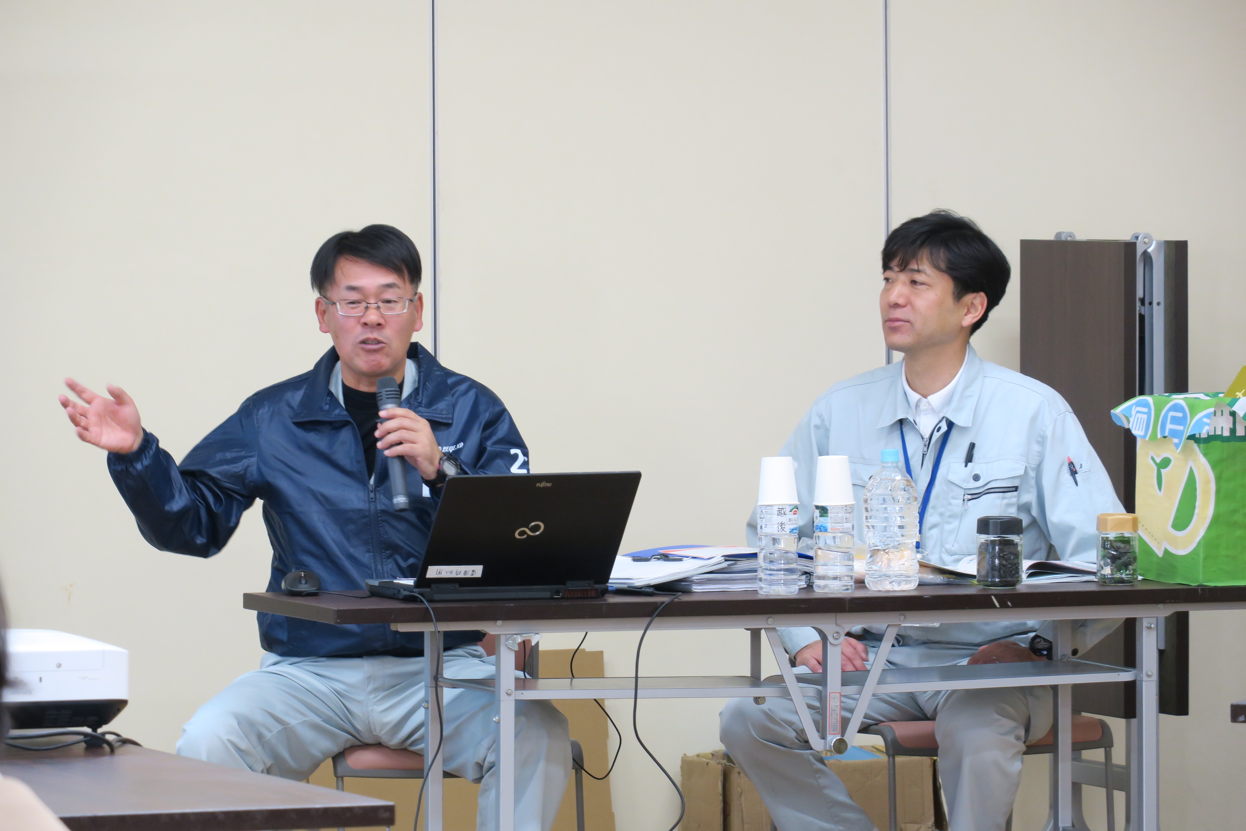 岡山市環境局環境部 環境事業課 資源循環推進室の梶上康征(かじかみ やすゆき)さんと近藤康弘さんを講師にお招きし、岡山市のごみ処理についてご講演いただきました。