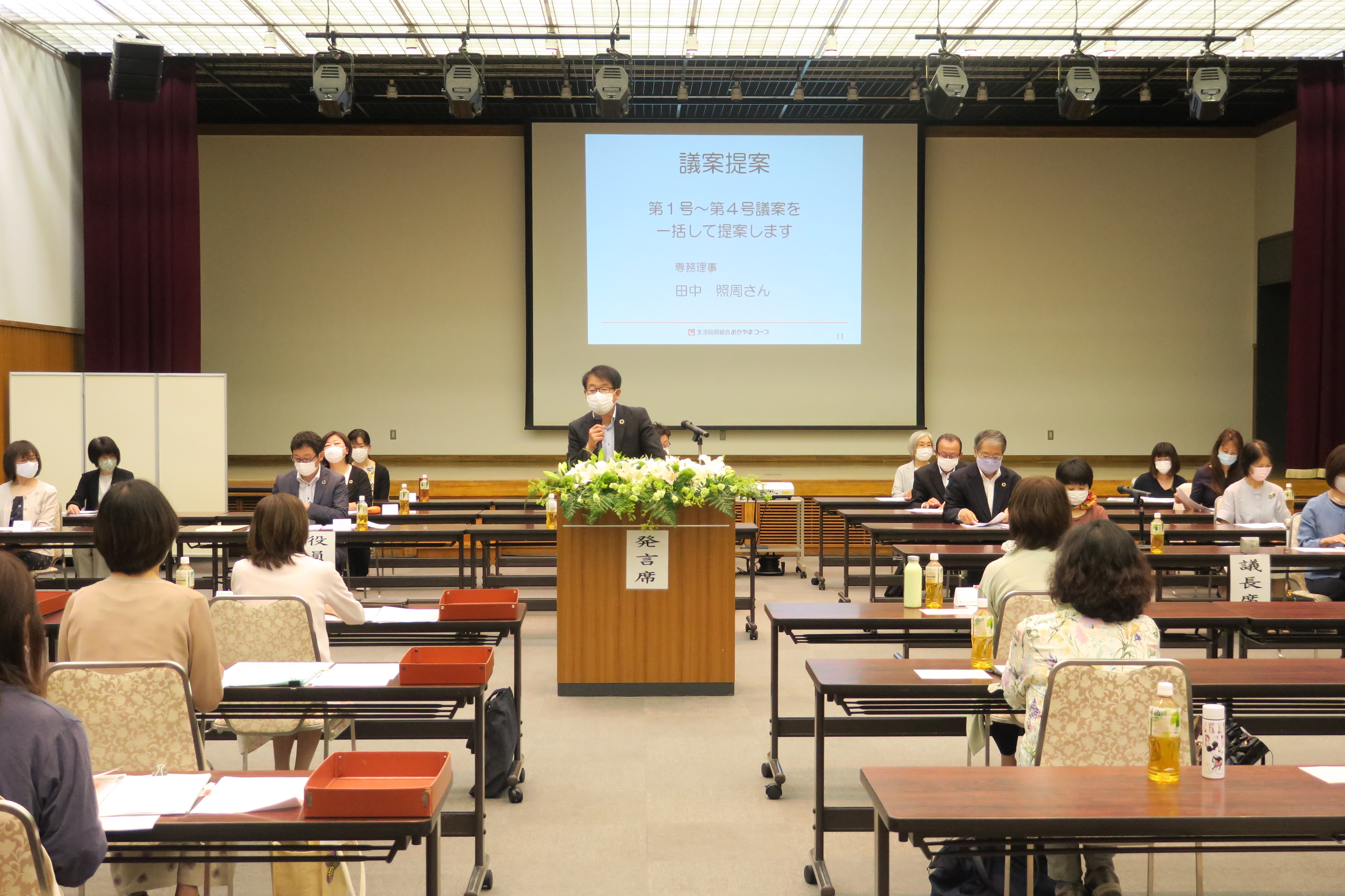 6月9日(火)、オルガホールにて、おかやまコープ第64期通常総代会を開催いたしました。今年は新型コロナウイルス感染拡大防止のため、書面議決を中心に、最小限の規模での開催となりました。