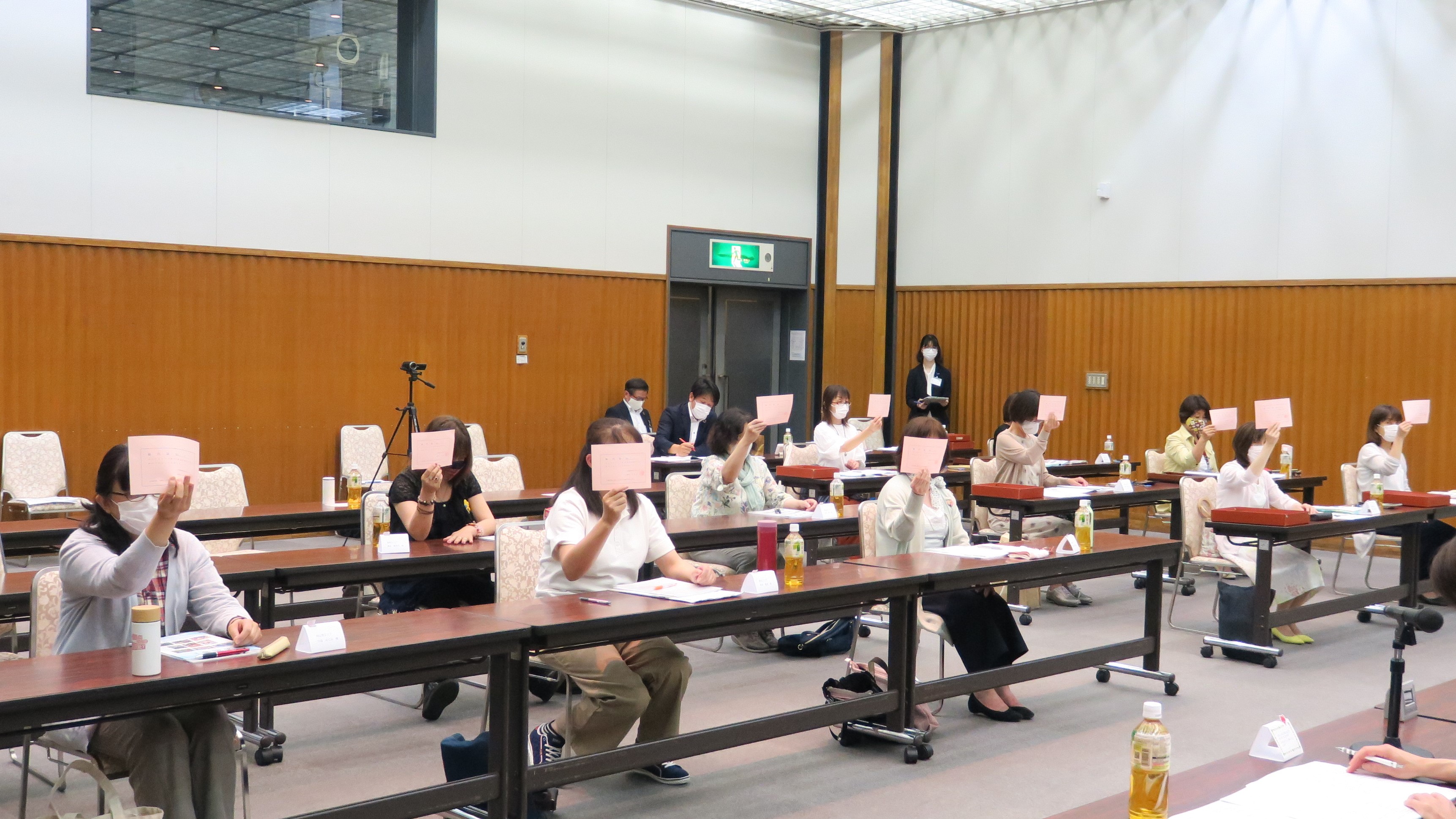 採決時、総代証を掲げる総代の皆さん