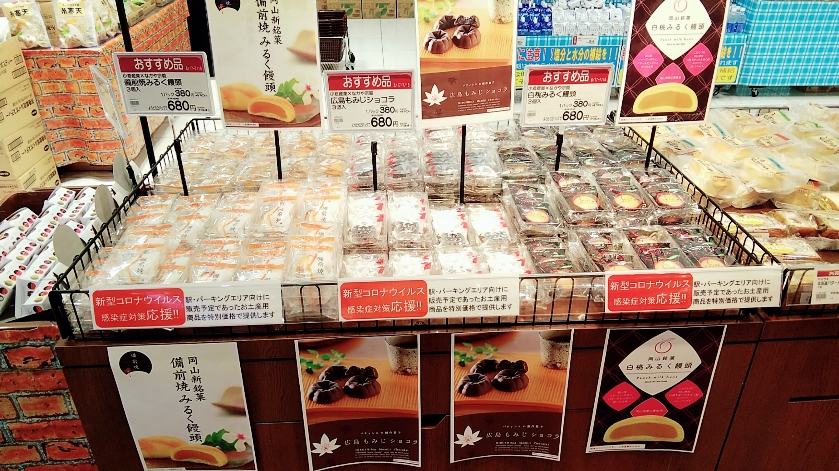 HOME 最新情報・お知らせ 新型コロナウイルス感染症対策応援企画!~地元メーカーのお土産用饅頭販売~ 最新情報・お知らせ 新型コロナウイルス感染症対策応援企画!~地元メーカーのお土産用饅頭販売~ 2020/06/18 新型コロナウイルス感染拡大の影響による「緊急事態宣言」を受け、GWの帰省やJRの土産物屋の休業やパーキングエリアでの商品撤去により、地元の土産物屋さんは大変な打撃を受けています。 おかやまコープは、そんな地元の土産物屋さんを少しでも応援するため、家庭用に包装した「小倉産業×なかや宗義」のお土産用饅頭を6月17日(水)から全店で販売開始しました。 パン売り場付近に設けられた特設売り場 商品は「広島もみじショコラ」「備前焼みるく饅頭」「白桃みるく饅頭」の3種類で、それぞれ3個入380円(税別)です。 駅やパーキングエリア向けに販売予定であったお土産用商品 岡山銘菓「白桃みるく饅頭」 商品を購入することで、地元メーカーさんを応援していきましょう!ご協力よろしくお願いします。 お知らせ一覧に戻る