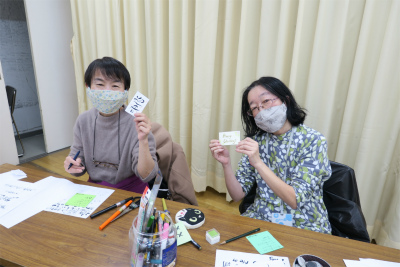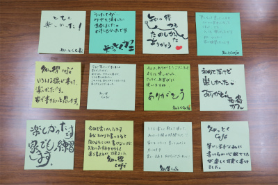 カードやハガキに思い思いの言葉を書き、作品に仕上げました。
