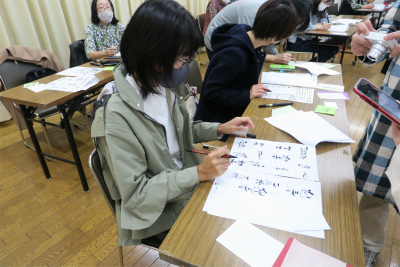 平川さんの筆先がなめらかに動き、味わいのある文字が生み出されると、「わぁ素敵」と声が上がっていました。