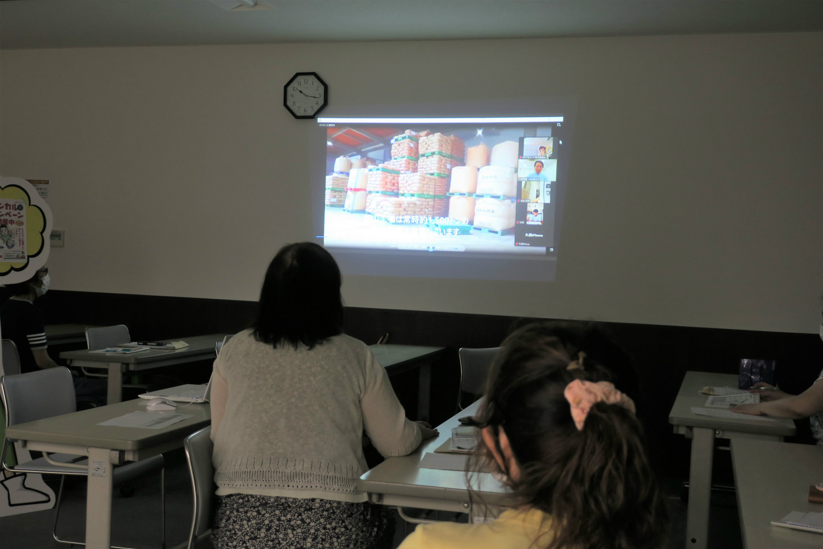 オンラインでつながった木徳神糧さんから、工場内を撮影した動画の説明をしていただきました。