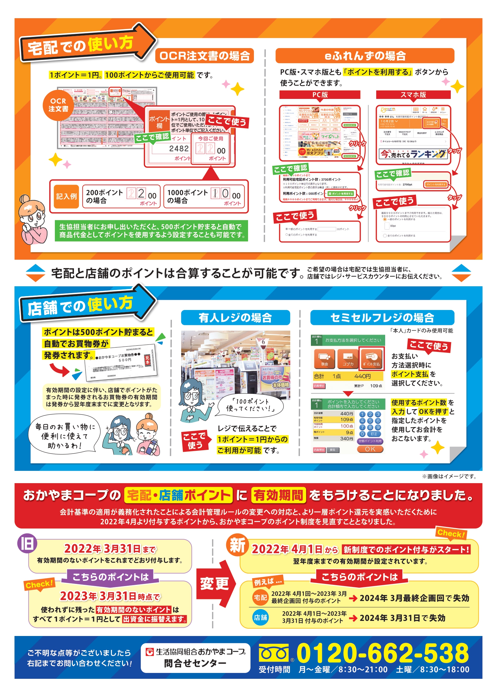 おかやまコープの宅配・店舗のポイントに有効期間をもうけることになりました。