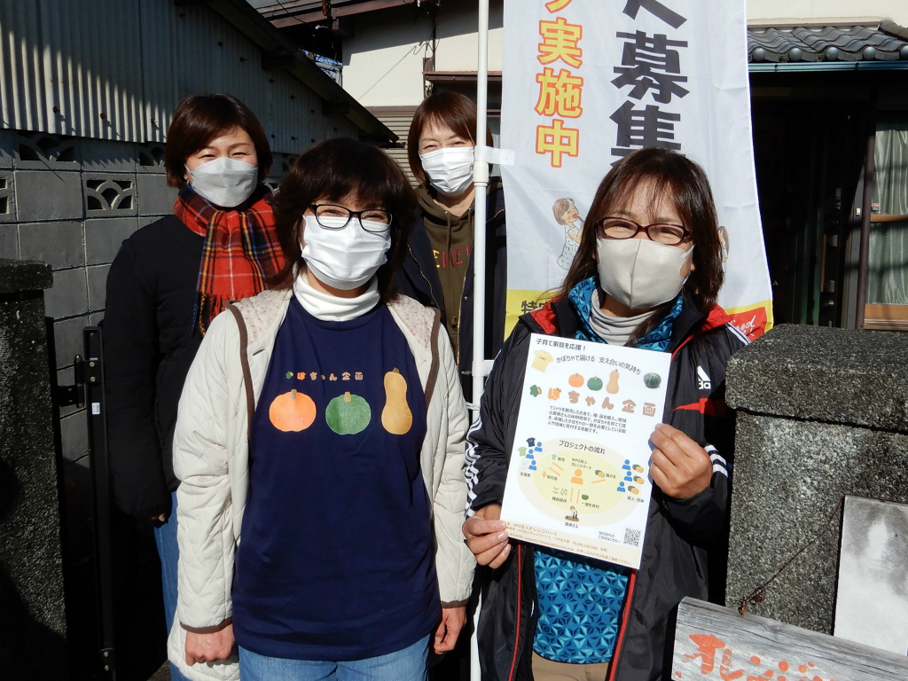 手にしているのは同法人が「かぼちゃの苗」を通じて支援を行うプロジェクト「かぼちゃん企画」のチラシです。支援品として大変喜ばれるかぼちゃをお届けするために立ち上げたプロジェクトだそうです。