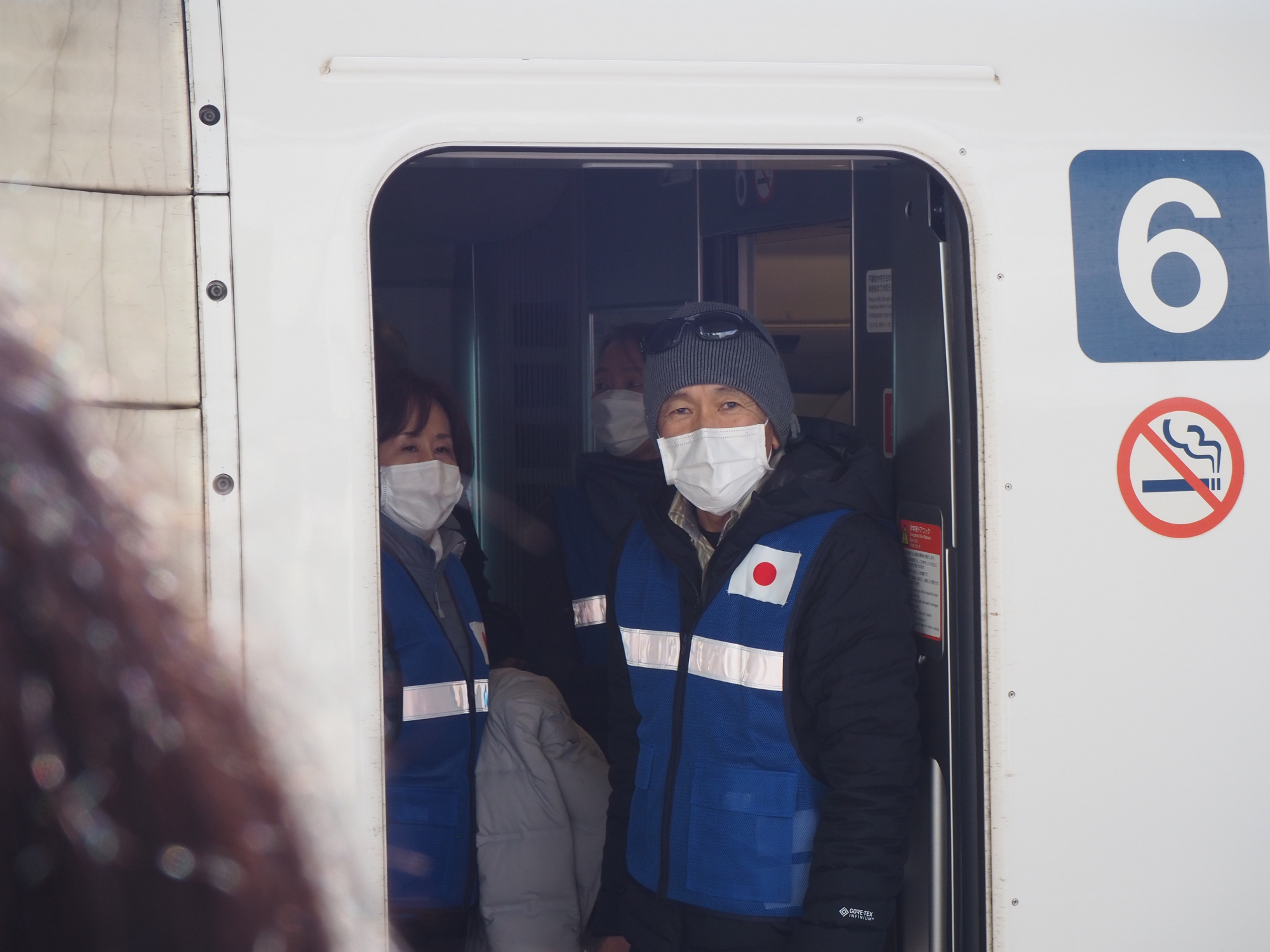新幹線に乗り込むチーム