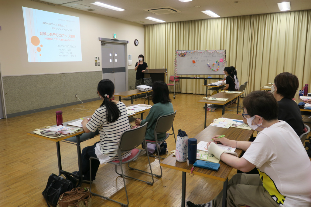 國塩さんの「自分や家族はもちろん、周りの人も消費者トラブルから守るために「見守り力」(異変に気付く、寄り添う気持ちで声掛けする、相談先につなぐ)を磨きましょう」という言葉に、参加者の組合員さんは大きくうなずいていました。