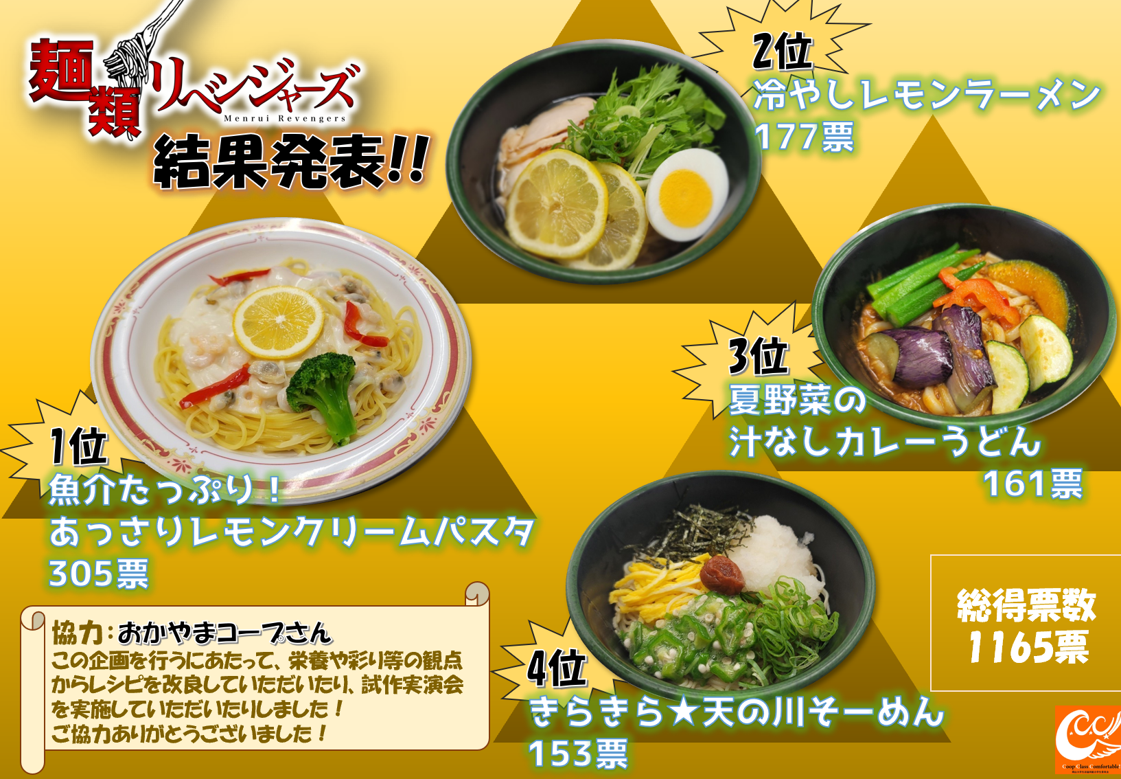 食堂レシピコンテスト企画2022「麺類リベンジャーズ」は、大学生の食生活を豊かにし、新入生にも食堂の魅力を伝えるために開催。学生から募集した「麺」をテーマにしたレシピの中で、上位メニューは大学生協の食堂で提供される予定です。