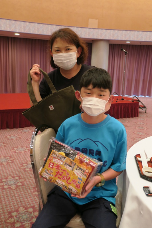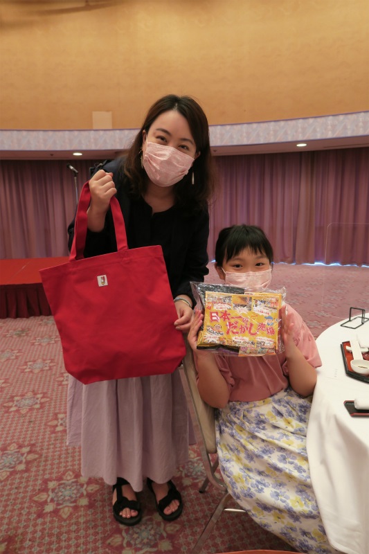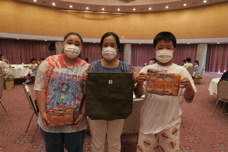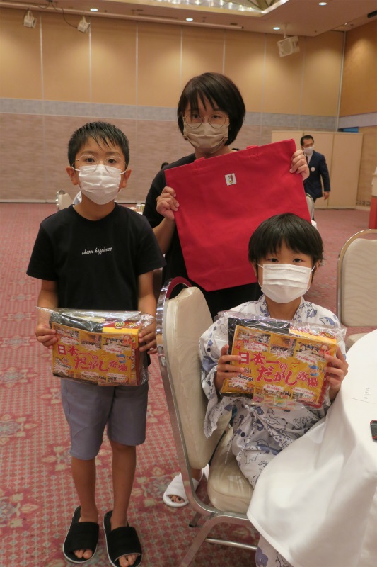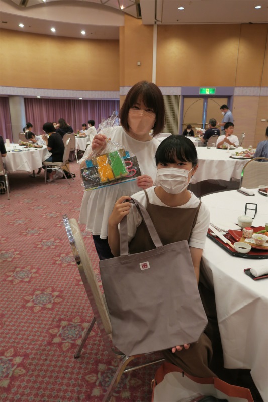 交流会の最後に、倉敷エリアの組合員さんが心を込めて準備したプレゼントをお渡ししました。倉敷帆布(はんぷ)のトートバッグと、お菓子・文具の詰め合わせです。お菓子の詰め合わせには、「日本一のだがし売場」を運営する株式会社 大町様にご協力いただきました。「倉敷帆布」も「日本一のだがし売場」もご存じの方が多く、とても喜んでくださいました。
