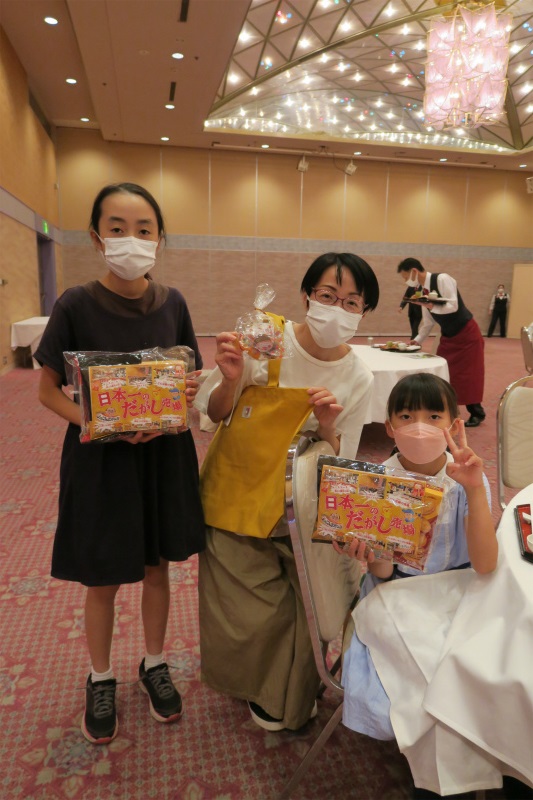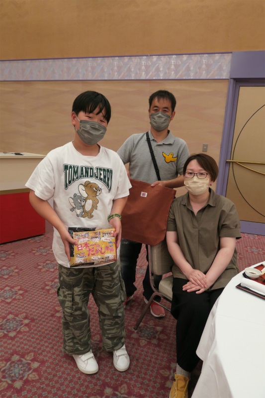 夕食前のひととき、岡山に関するクイズやじゃんけん大会、「すいんきょ(※)」の物語の紹介などで盛り上がりました。