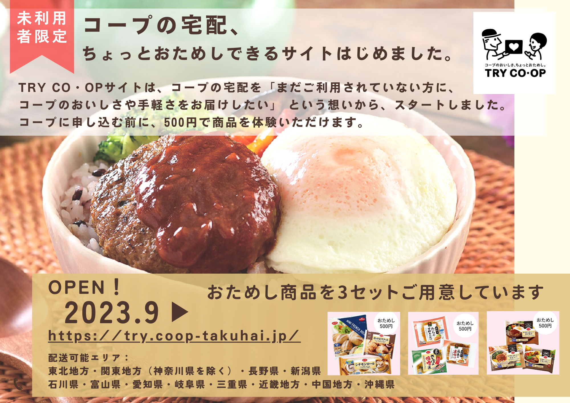 HOME 最新情報・お知らせ TRY CO・OP サイトオープン! 最新情報・お知らせ TRY CO・OP サイトオープン! 2023/09/01 2023年9月1日(金) コープをためしてみたい方のために、TRY CO・OPをオープンしました! 500円でおためし商品が利用できます。 画像をクリックするとサイトへ移動します!! お知らせ一覧に戻る