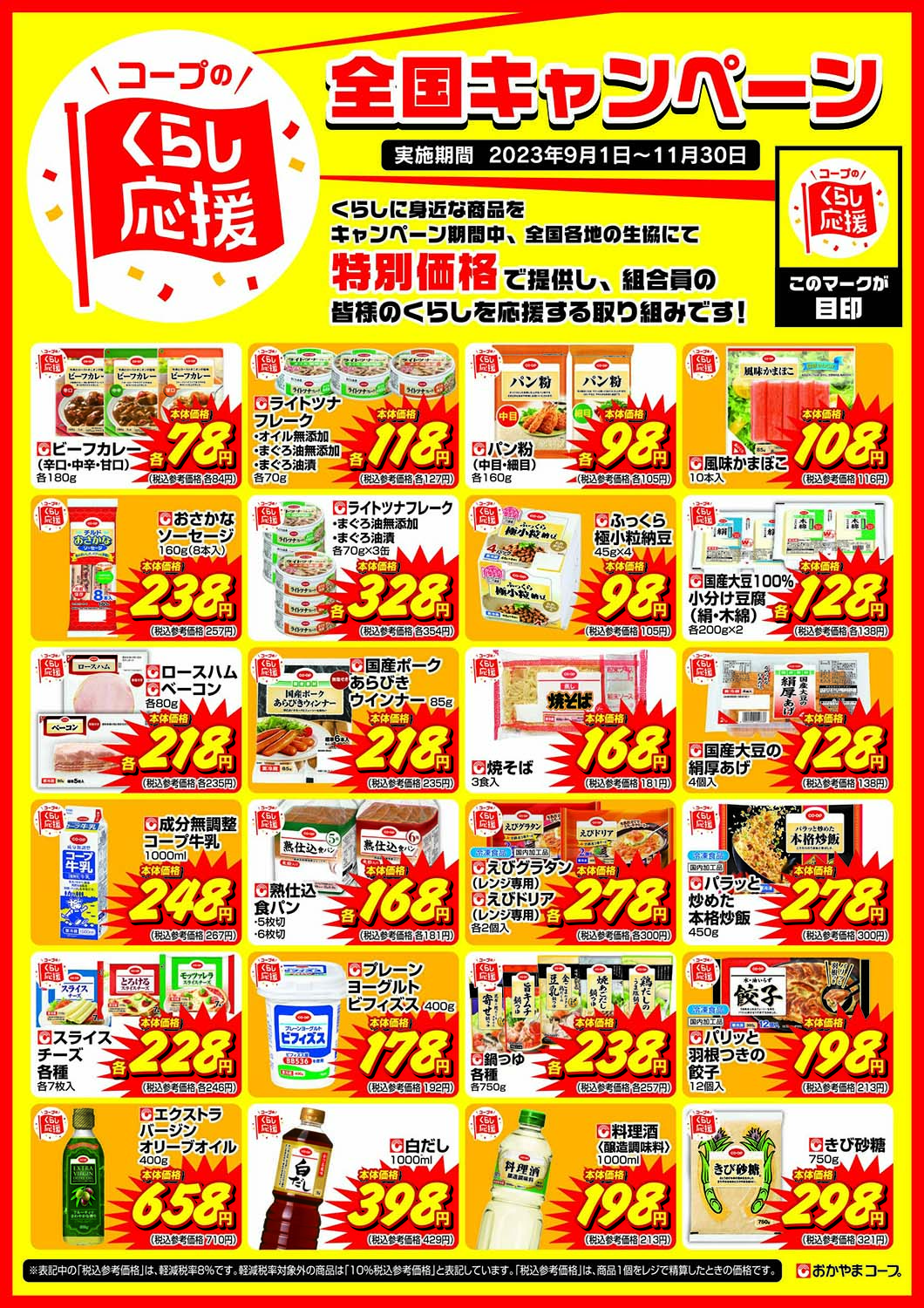 「くらし応援全国キャンペーン」は、物価上昇が続く状況の中、組合員のくらしを応援するため、くらしに身近な商品を選定し、全国各地の生協にて特別価格で提供します。