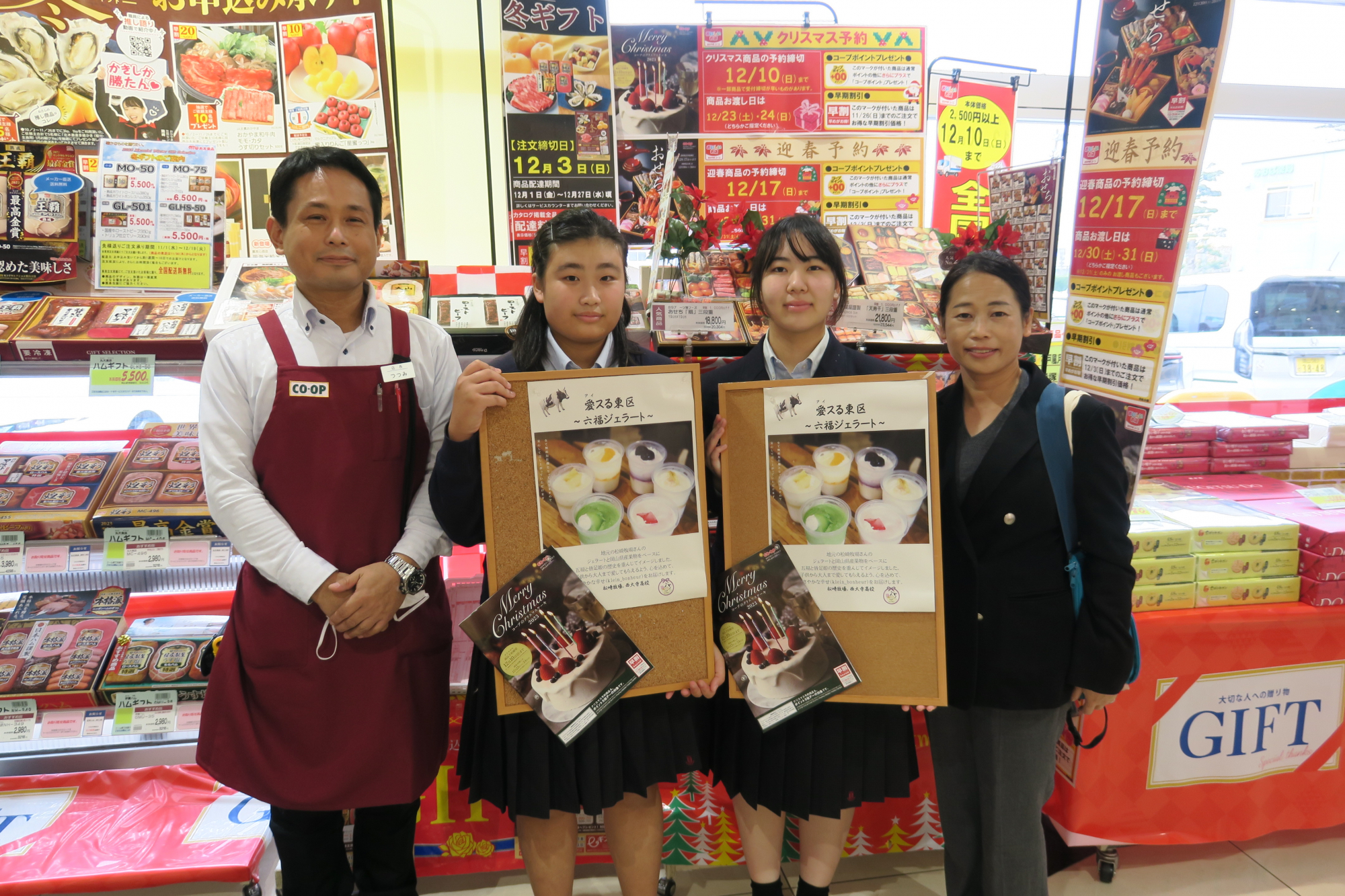 また、来店された組合員さんの中には「熱心な生徒さんの姿を見て応援したくなりました」「クリスマスに向けて家族で検討してみます」と、笑顔でカタログを持ち帰っていました。