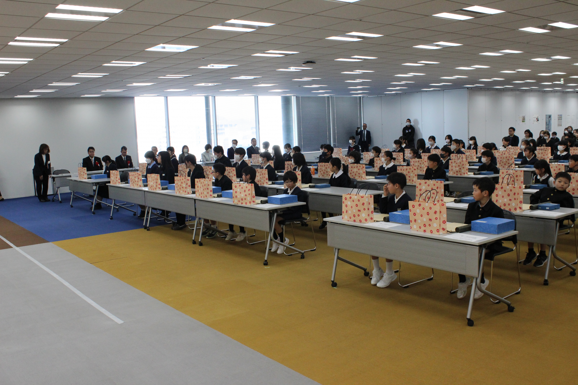 表彰式には、おかやまコープから志賀秀樹組織本部長が出席し、児童生徒一人ひとりに、表彰状と記念の盾を贈り、毎年子ども達から喜ばれている「コープ商品お菓子詰め合わせ」もプレゼントしました。
