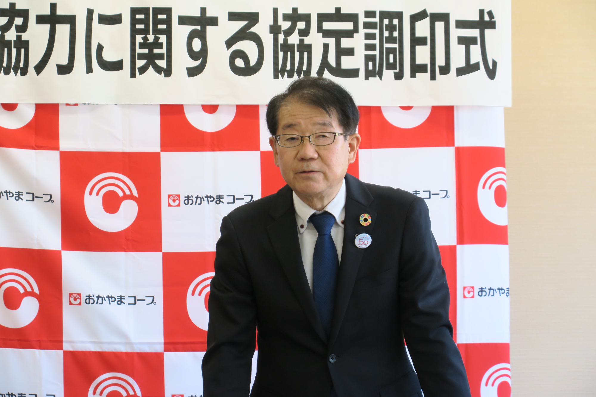 おかやまコープは、これまでにも地域社会貢献活動の一環として、高齢者や障害者、子育て家庭へのサポート事業を実施されてきました。今回の連携協定の締結により、おかやまコープの宅配の持つノウハウと町行政サービスを組み合わせることで、より効果的な支援を実現することができると確信しています。
