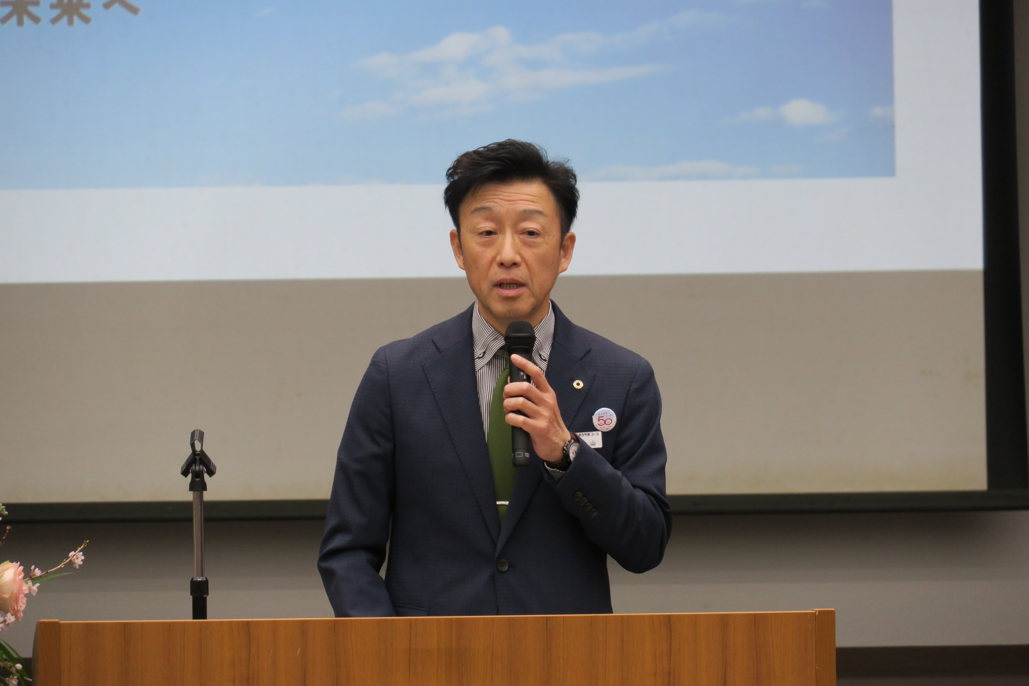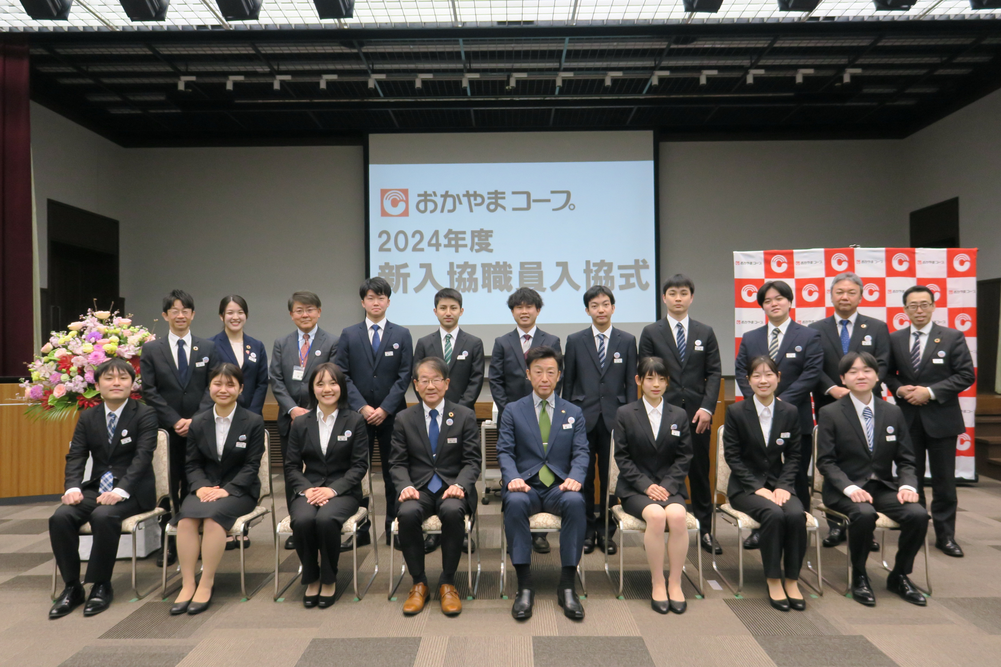 続いて、徳山雅昭専務理事は、「今年度はおかやまコープ再建50周年、そして、新しいビジョンスタートの年でもあります。この節目の年に入協された皆さんには自分自身への投資もしっかりと行っていただき、皆さんにとっても記念すべき年になるよう願っています」と祝辞が贈られました。