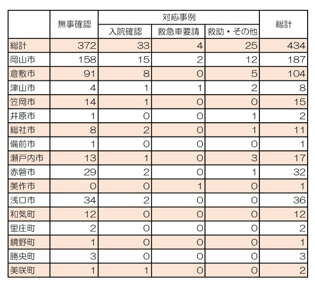 一人暮らしの組合員さん宅へ配達に行き玄関で呼び鈴を押すと、家の中から息苦しいような声が聞こえました。異常を感じ大きな声で「〇〇さん、生協です」と呼ぶと、ろれつが回ってないようなしゃべり方で「倒れて動けない」と返事がありました。玄関を開けようとしたところ鍵が閉まっており「救急呼びますよ」と言いましたが返事がなく、すぐに救急車を呼びました。【表】 市町村別 安否確認対応件数(2023年4月1日~2024年3月31日)