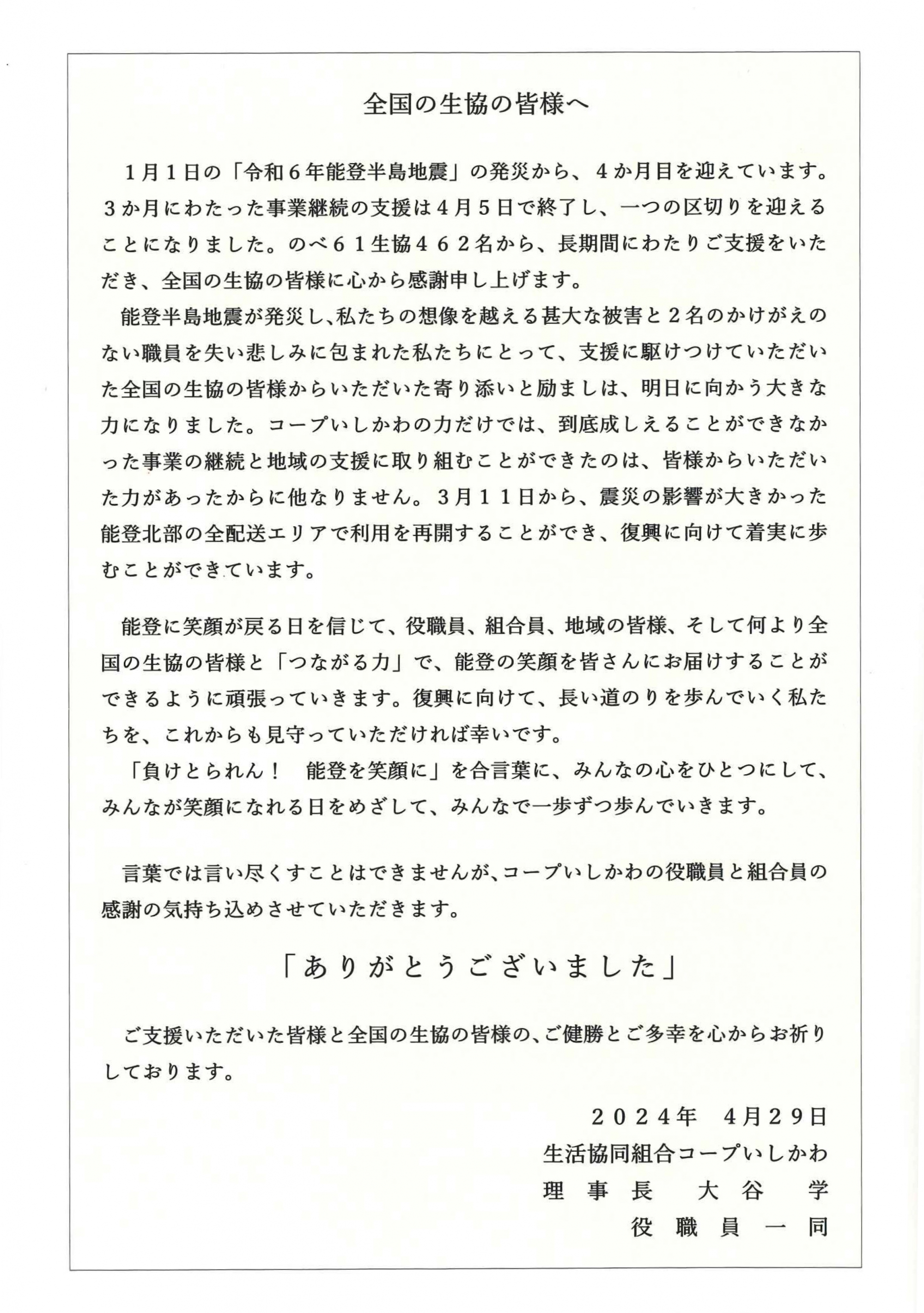 令和6年能登半島地震で被災したコープいしかわへお見舞い訪問
