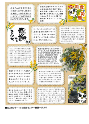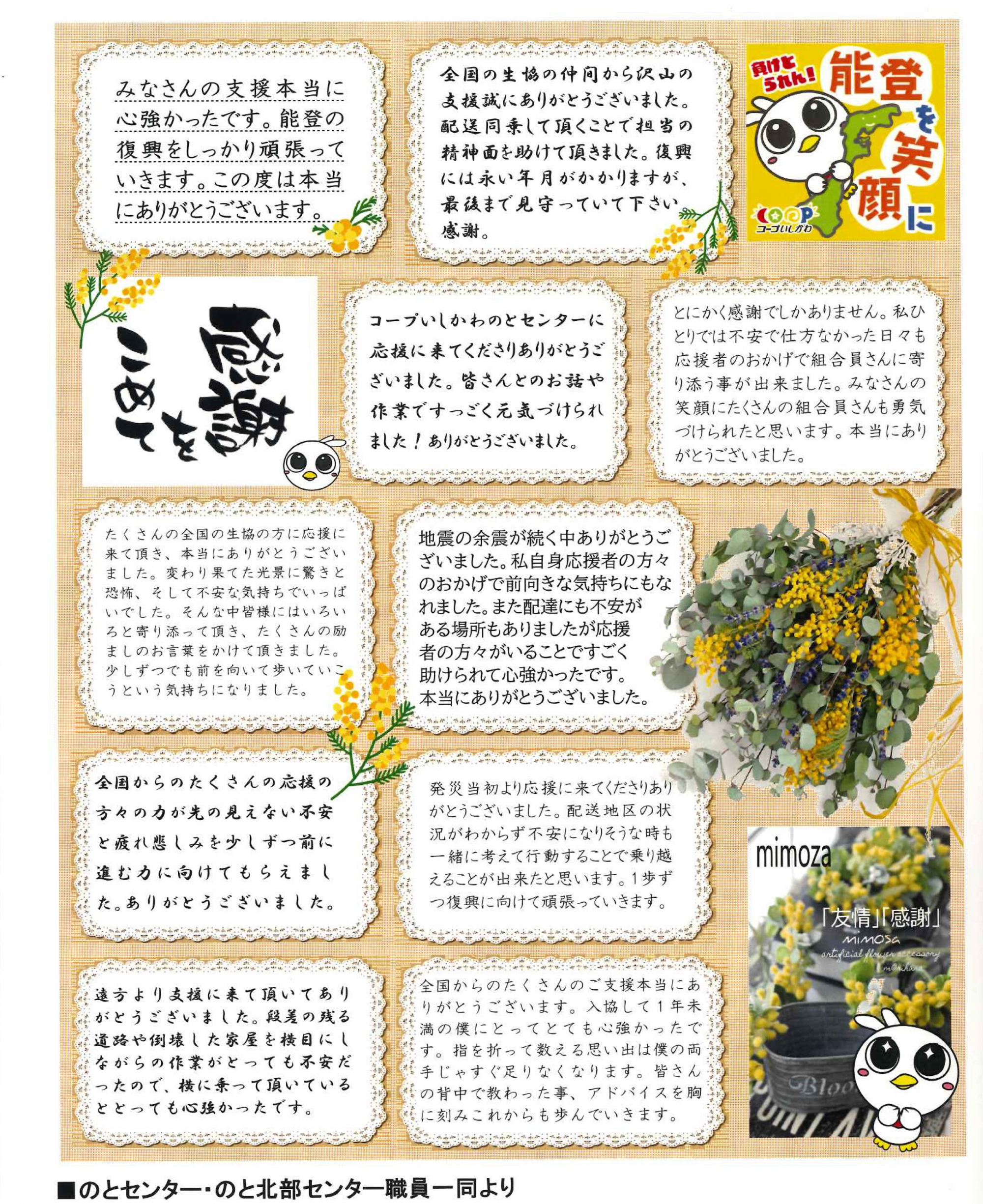 また、3月11日にはおかやまコープ田中照周理事長がコープいしかわを訪問し、お見舞い金10万円とおかやまコープの組合員が書いた応援メッセージをお渡ししました。